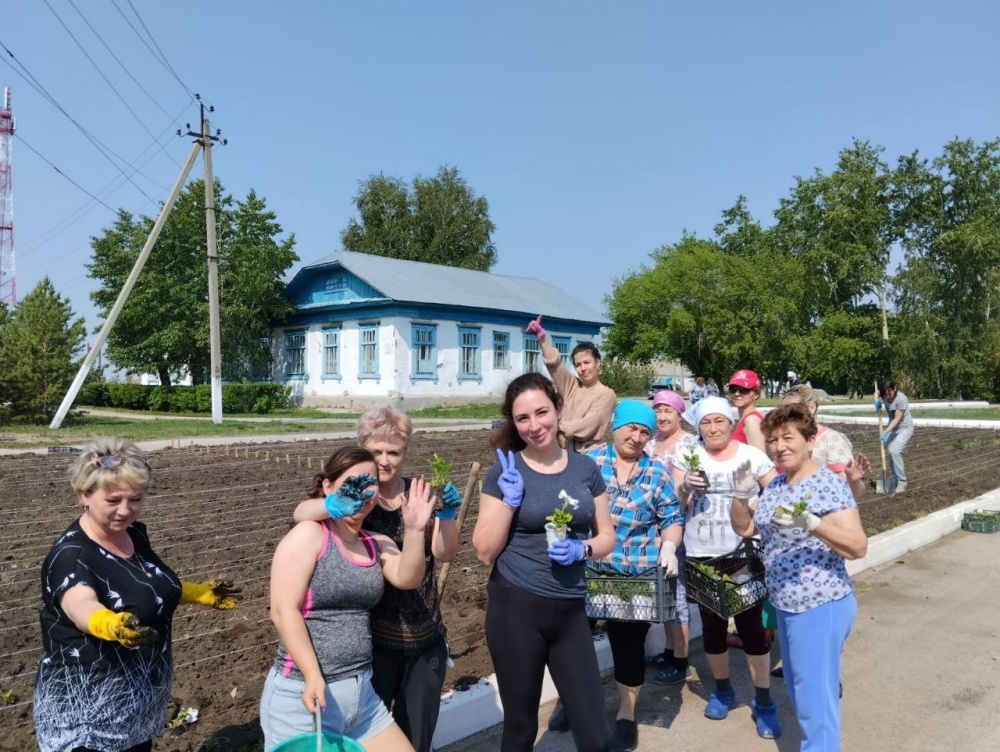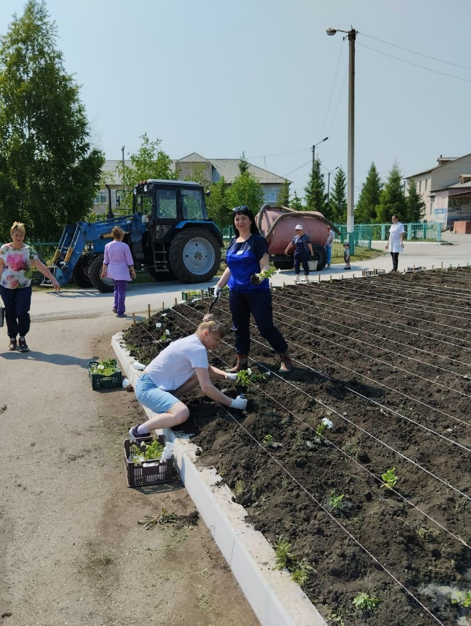В озеленении принимали участие сотрудники. Теперь яркий ковер из цветов будет радовать всех посетителей больницы.