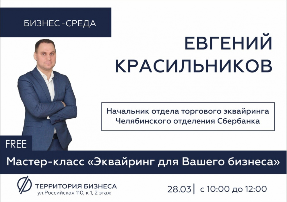 В качестве спикера выступит Евгений Красильников, начальник отдела торгового эквайринга челябинского отделения Сбербанка.