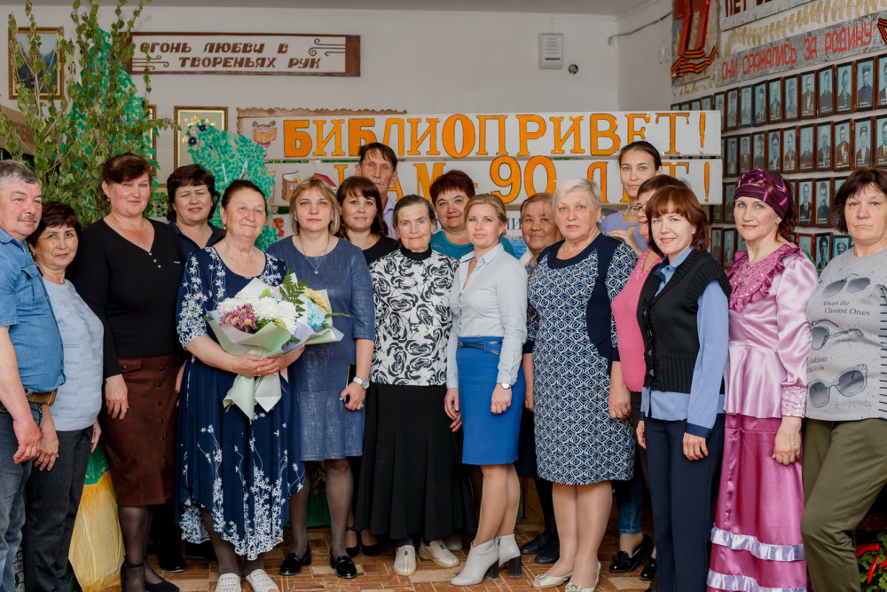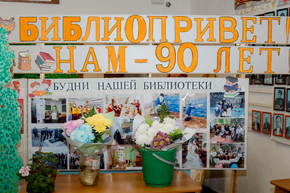 Библиотеку украсили краеведческие выставки, уголки с фотографиями «Будни нашей библиотеки», поздравительный стенд "Библио-привет! С юбилеем - 90 лет!".