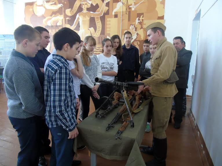 Большой интерес у ребят привлекла экспозиция «Оружие и атрибуты времён Великой Отечественной войны». Её куратор – Алик Илишев рассказал школьникам о технических характеристиках огнестрельного оружия времён войны.
