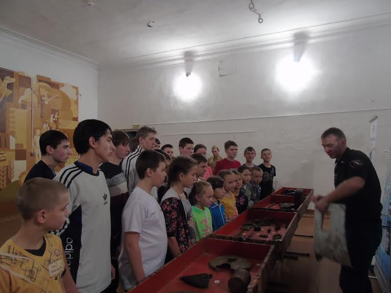 Знакомство юных жителей с. Варны с экспозицией началось с выставки, состоящей из книг и брошюр, в которых представлена информация об особенностях, направлениях работы, проектах Поискового Движения России. Куратор экспозиции Евгений Гуринович подробно рассказал об успехах челябинских поисковиков, находках при раскопе на Синявинских болотах и высотах, ставших местом ожесточённых боевых действий в период 1941 - 1944 годов, сыгравших решающую роль в битве за Ленинград. Именно в лесах и болотах у небольшой деревни Синявино решалась судьба героического блокадного Ленинграда. За все время боев на Синявинских Высотах советские войска потеряли свыше 360 000 человек, больше чем Великобритания за всю Вторую Мировую Войну.