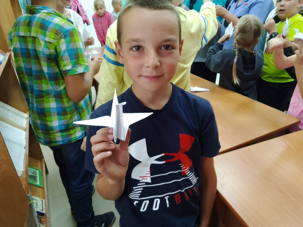 На Кавказе есть поверье, будто павшие на полях сражений воины превращались в журавлей , поэтому символом всех погибших за Родину стали журавли и сегодня дети с оздоровительного летнего лагеря МОУ СОШ №2 активно приняли участие в мастер – классе по изготовлению бумажного журавлика.