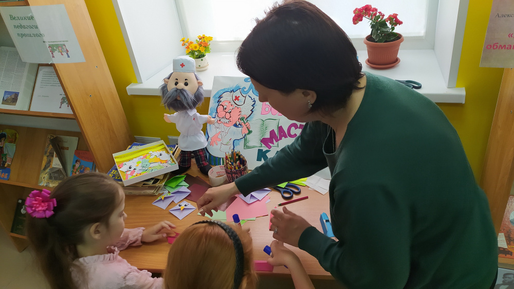 В начале мероприятия библиотекари рассказывают ребятам о «болезнях» книг, дети внимательно слушают, а затем с большой ответственностью подходят к «лечению» литературы:
