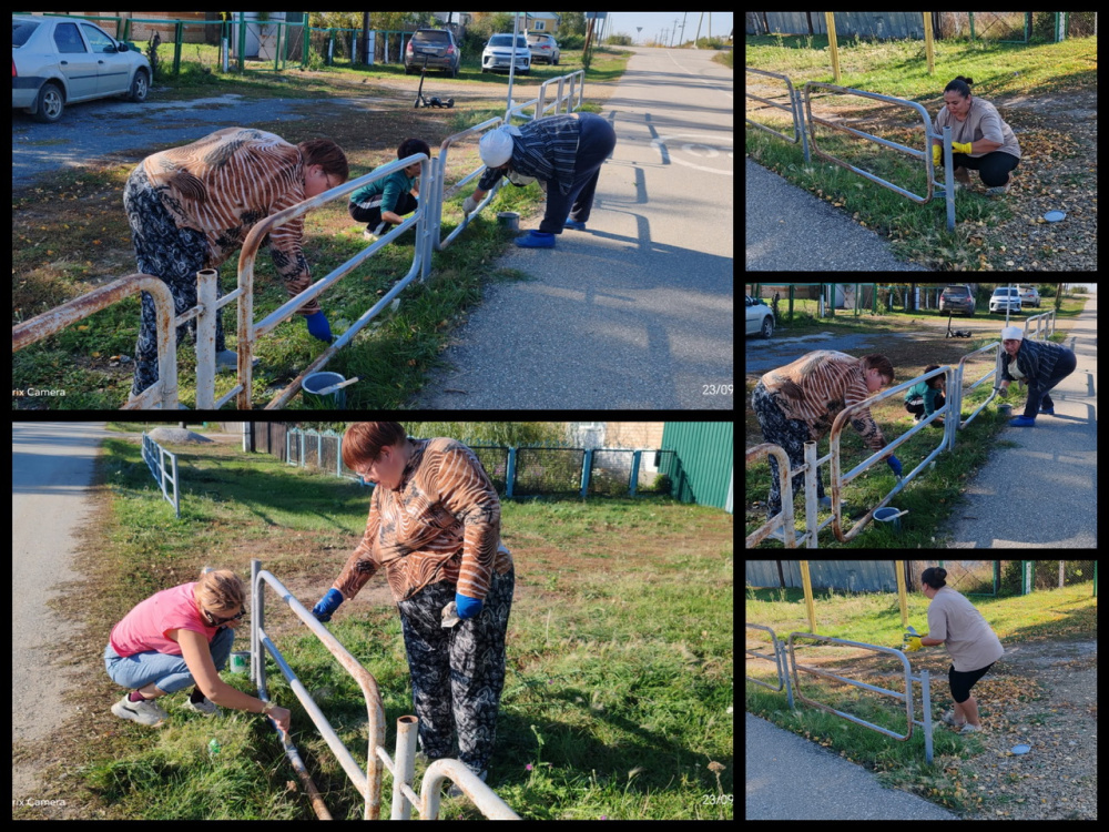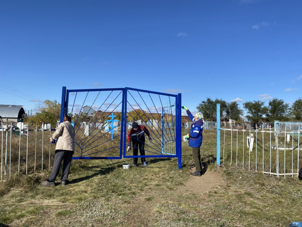Участники мероприятия покрасили пешеходные ограждения, въездные ворота на площади и заборы кладбища. Также была проведена уборка территории остановки, где собрали как крупный, так и мелкий мусор.