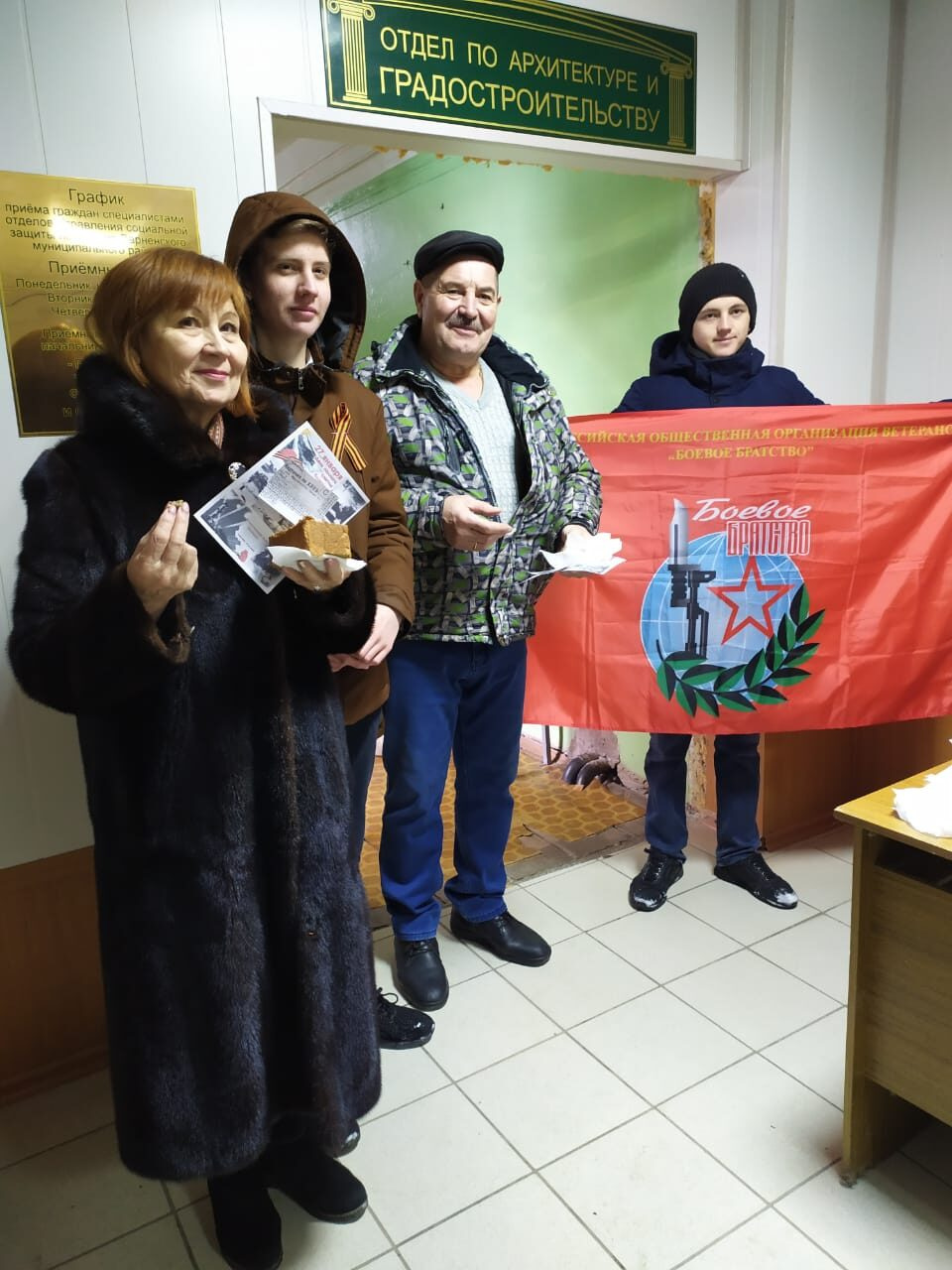 В рамках Всероссийской акции памяти «Блокадный хлеб» 27.01.2020 г. волонтёры серебряного возраста МУ «Комплексный центр» совместно с волонтёрским центром «Дорога добра» и при поддержки общественной организации «Боевое братство» организовали мероприятие, связанное с воспоминаниями о страшных долгих днях блокадного Ленинграда. Участники разместились на двух площадках с. Варна – площадь Труда и ТК «Солнечный», раздавали хлебные карточки, листовки, разъясняя населению историю Ленинграда в годы блокады, предлагали взять кусочек специально испечённого для акции хлеба.
