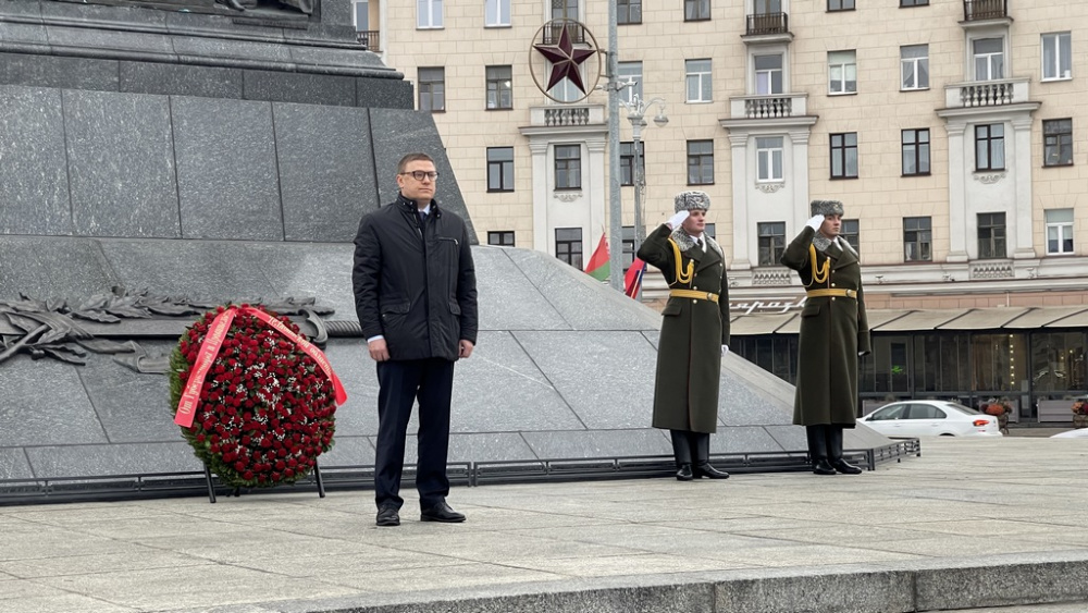 Также Алексей Текслер принял участие в церемонии возложения венка и цветов к Вечному огню у монумента Победы. В мероприятии приняли участие члены южноуральской делегации.