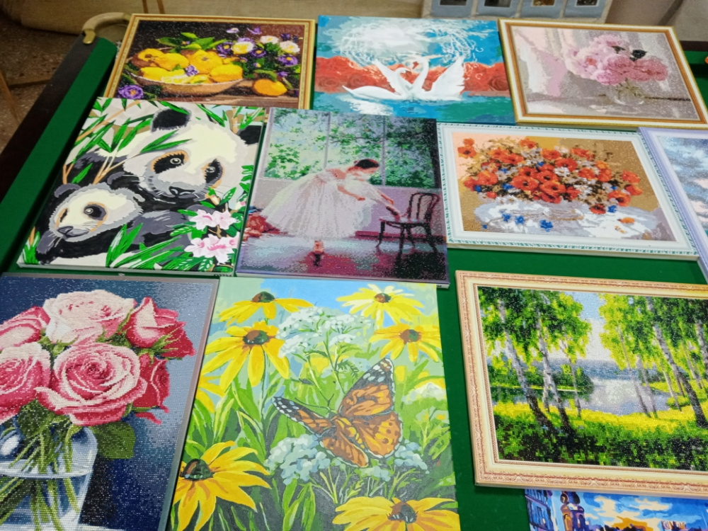 В Краснооктябрьском сельском Доме культуры организовали выставку работ жителей поселка. На выставке, представлены работы: мягкие вязаные игрушки, плед, пинетки, носки, шкатулки, вазы, коврик, картины, цветы из лент, деревянные доски, сумочки из бус. Выставка пользуется большим успехом.