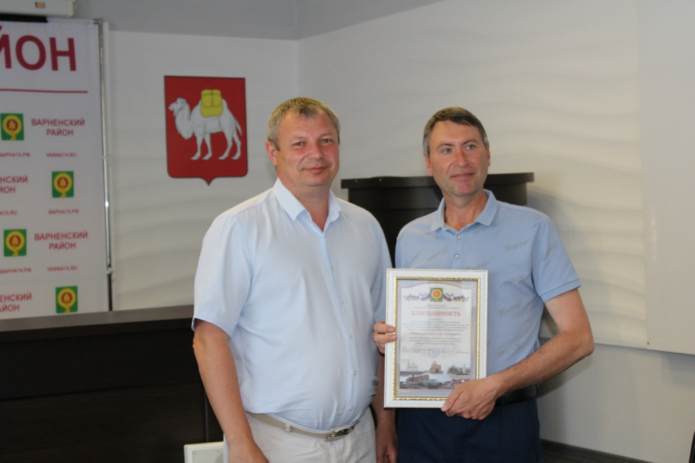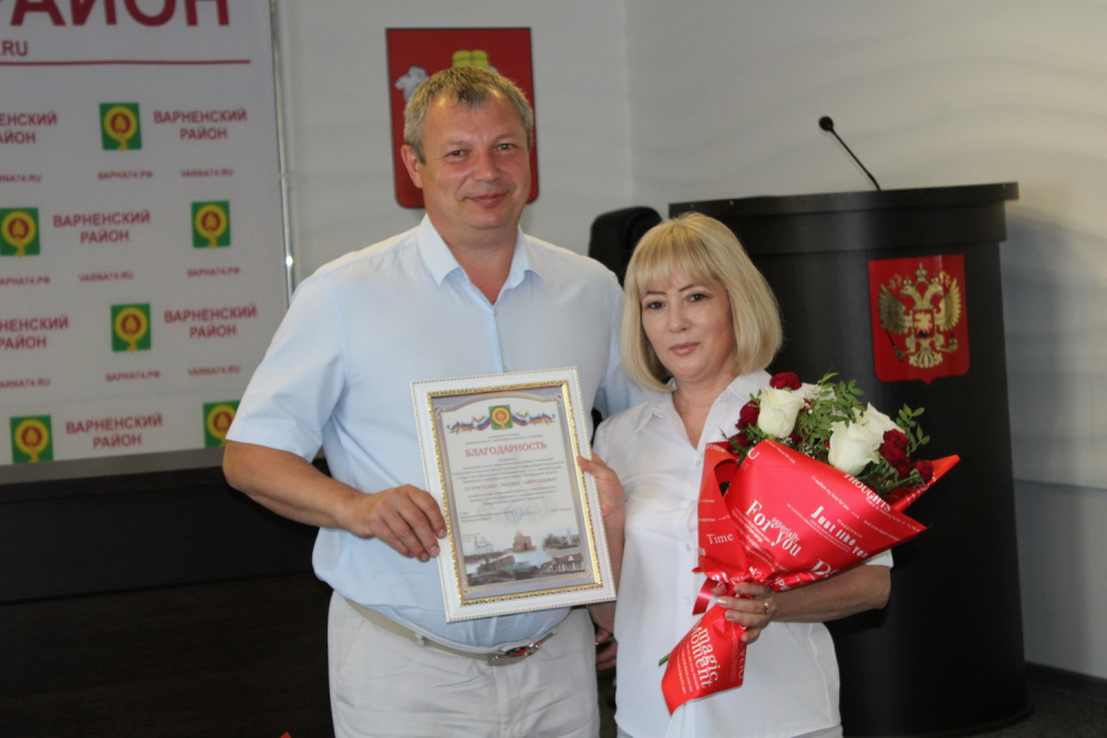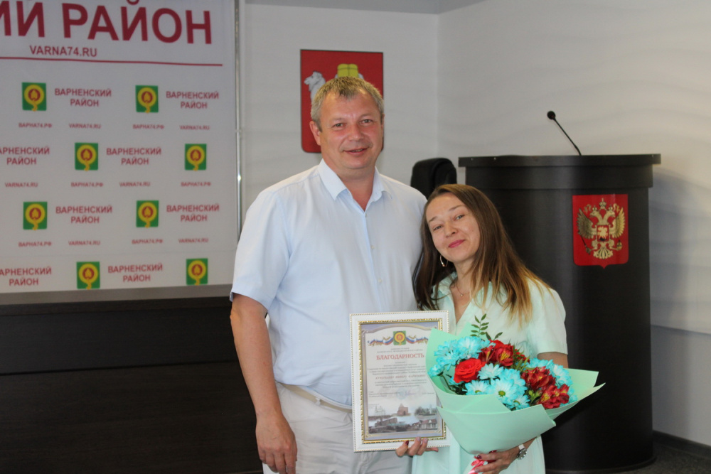 5 июня в администрации Варненского муниципального района прошло аппаратное совещание, на котором Константин Моисеев вручил Благодарственные письма сотрудникам Управления по имущественной политике и координации деятельности в сфере государственных и муниципальных услуг администрации Варненского муниципального района: начальнику отдела земельно-имущественных отношений Петриченко Люции Зайнулловне, ведущему специалисту по учету и начислению арендной платы Маклаковой Галине Владимировне, ведущему специалисту по земельным отношениям Ефремову Олегу Анатольевичу, ведущему специалисту по закупкам Кучербаевой Винере Фаритовне, за многолетний добросовестный труд, ответственность, высокие производственные и служебные показатели и большой вклад в развитие учреждения.