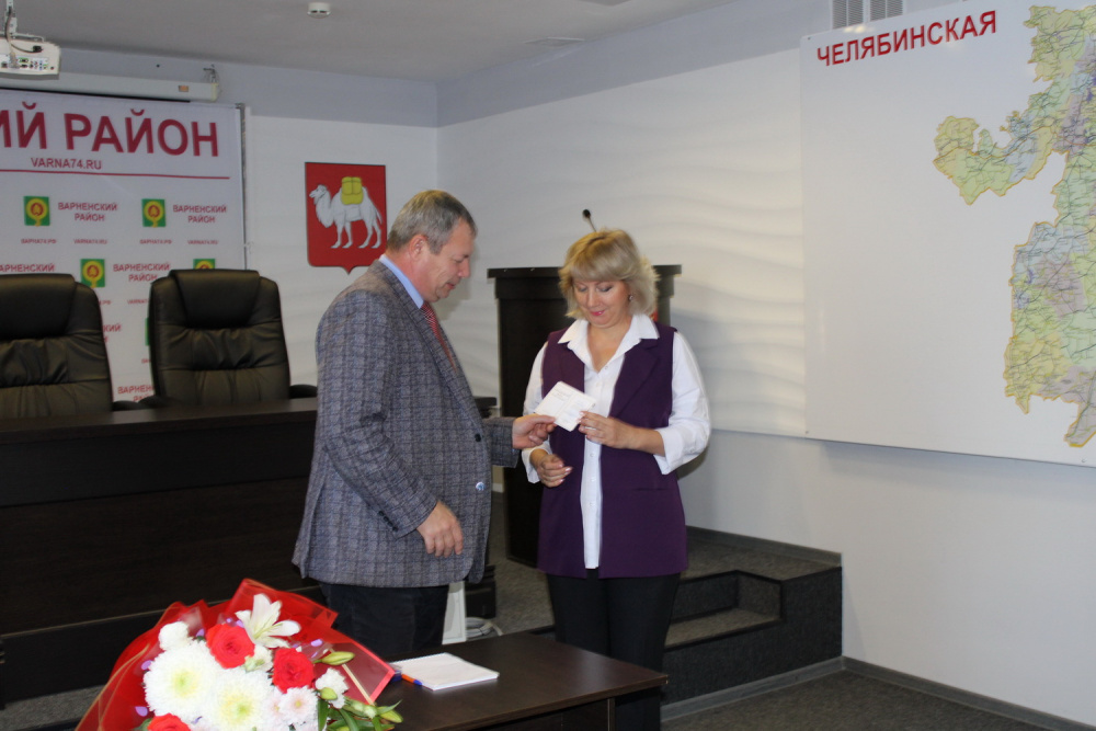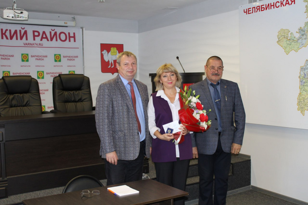 Глава района Константин Моисеев вручил педагогу нагрудный знак «Почётный работник сферы образования Российской Федерации», поблагодарил Ирину Владимировну за многолетний добросовестный труд и достойный вклад в развитие системы образования Варненского района.