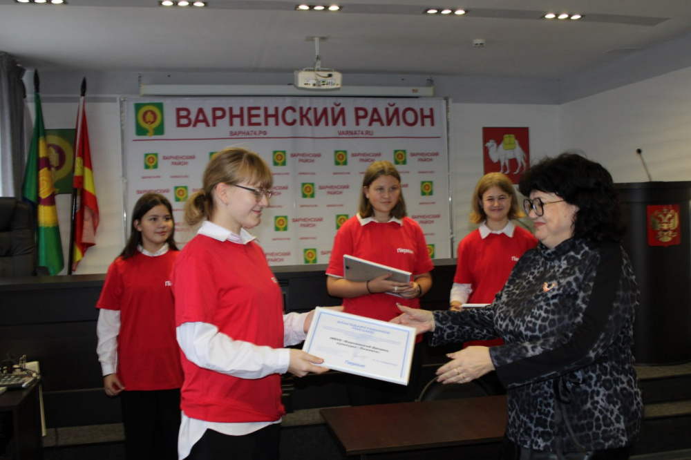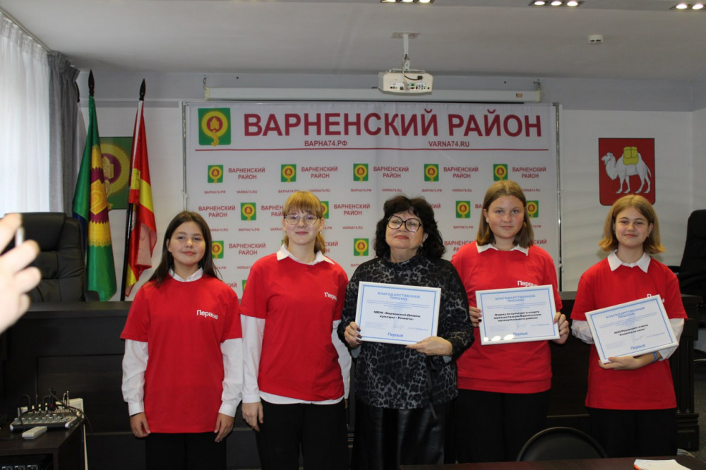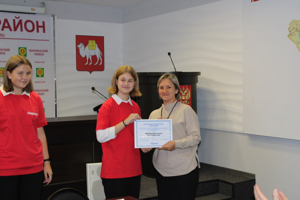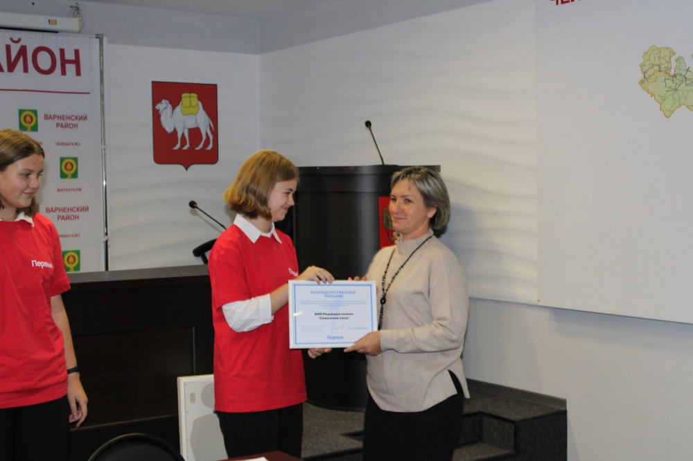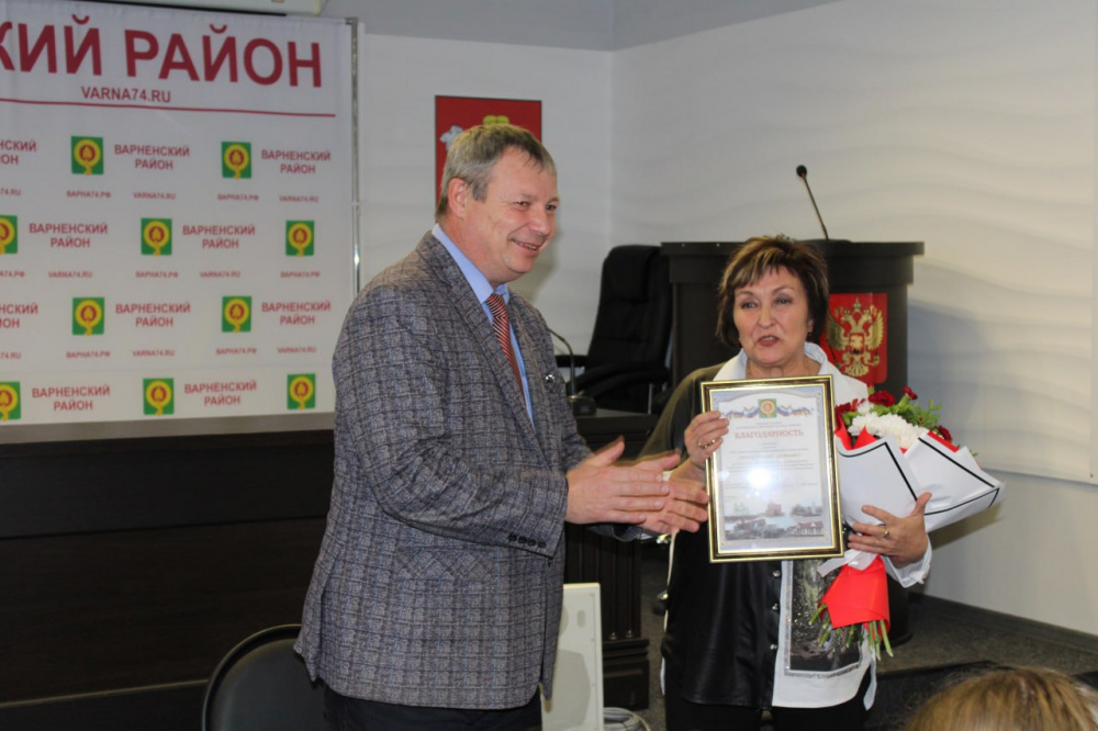 За активное участие в мероприятиях Движения от председателя Совета местного отделения Елены Гайрфановой были вручены благодарственные письма заместителю главы по социальным вопросам Оксане Васичкиной, Отделу по культуре и спорту администрации Варненского муниципального района, редакции газеты "Советское село", Варненскому районному Дворцу культуры "Планета".