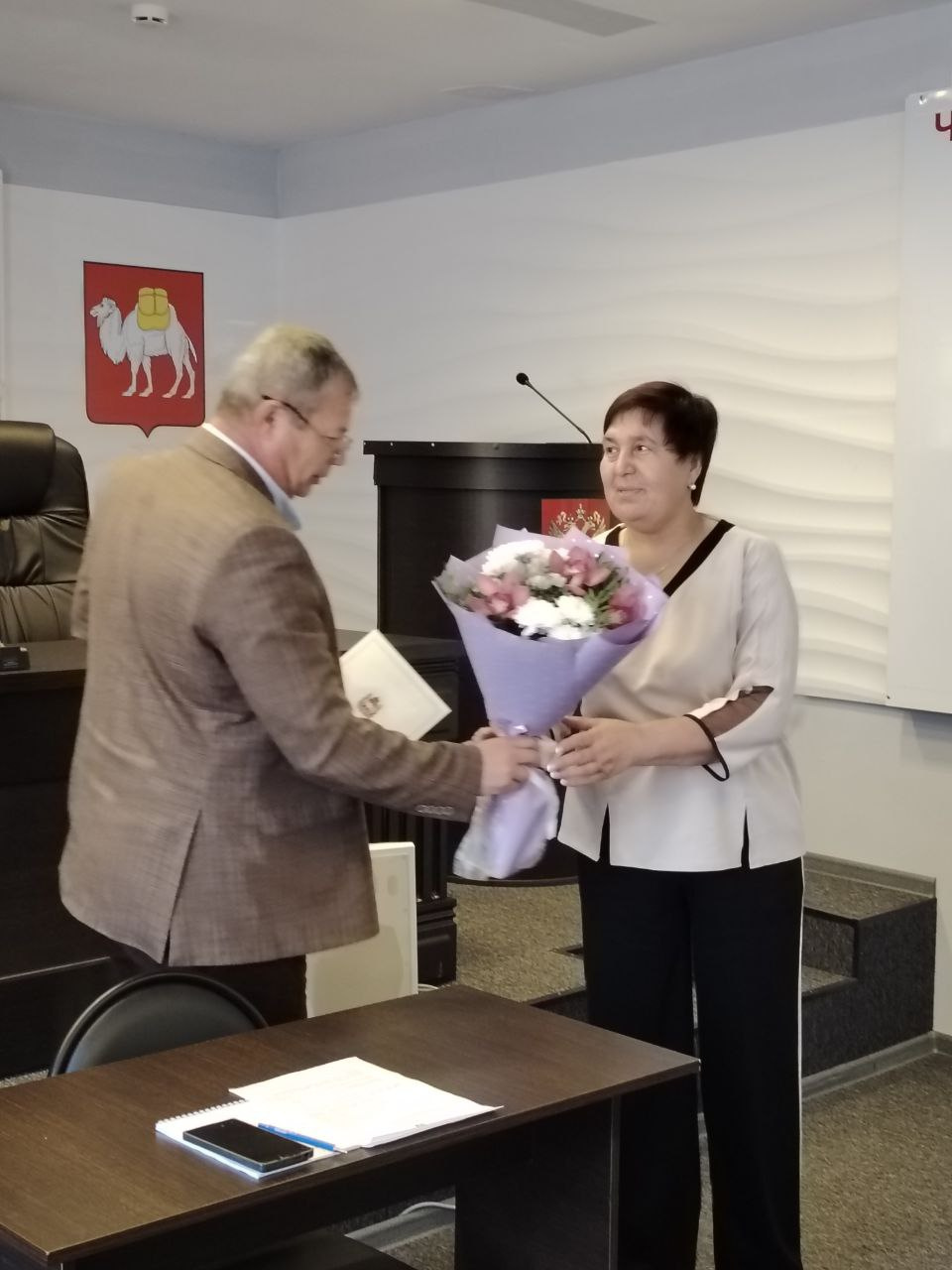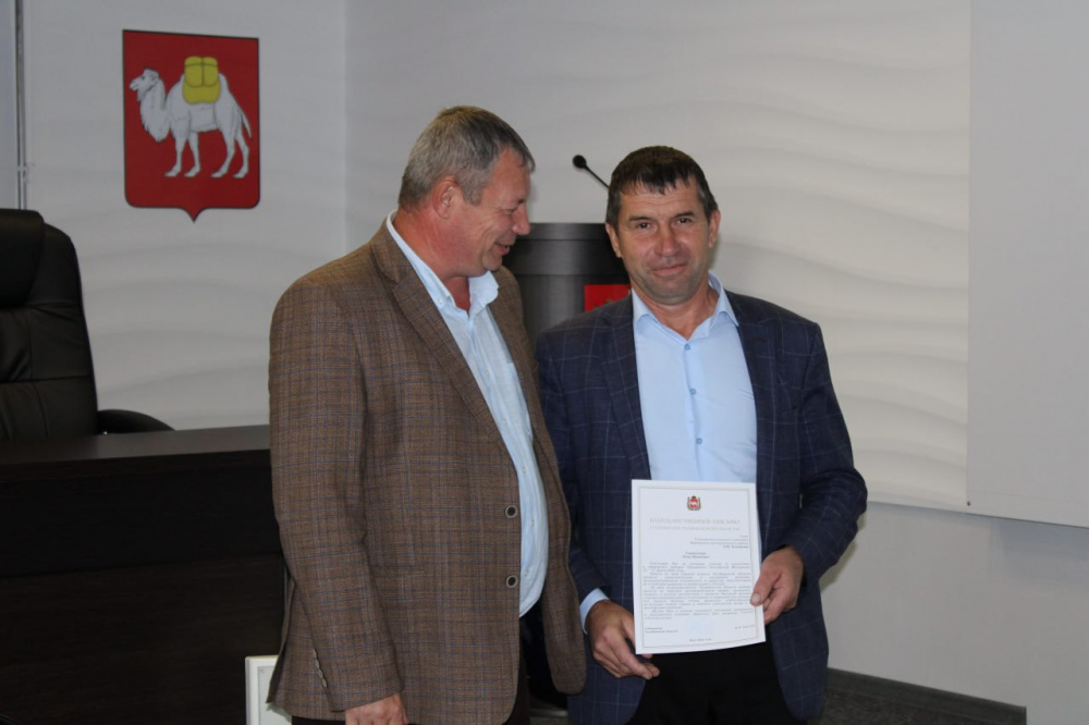 Затем Глава района вручил Благодарственные письма Губернатора Челябинской области за успешное проведение выборов Президента Российской Федерации главе Лейпцигского сельского поселения Эльзе Тимирхановне Пискуновой и главе Толстинского сельского поселения Петру Ивановичу Канайкину.
