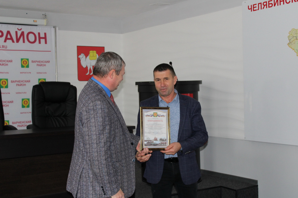 Прежде чем перейти к повестке, Глава района Константин Моисеев вручил Почётную грамоту главе Толстинского сельского поселения Петру Канайкину за добросовестный труд, профессионализм, ответственность и в связи с юбилеем. Секретарь Варненского отделения Партии «Единая Россия», председатель Собрания депутатов Алексей Кормилицын поздравил юбиляра и преподнёс памятный подарок.