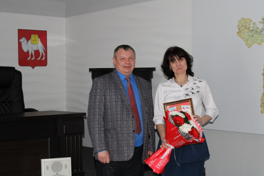 Глава Варненского муниципального района К.Ю. Моисеев вручил Грамоты от Совета муниципальных образований Челябинской области за добросовестный труд, высокий профессионализм и эффективную муниципальную службу в органах местного самоуправления Гальт Ларисе Валентиновне — специалисту 1 категории отдела экономики и сельского хозяйства администрации Варненского муниципального района и Тубиновой Вере Саитовне — начальнику отдела финансово-экономического и правового обеспечения управления образования администрации Варненского муниципального района.