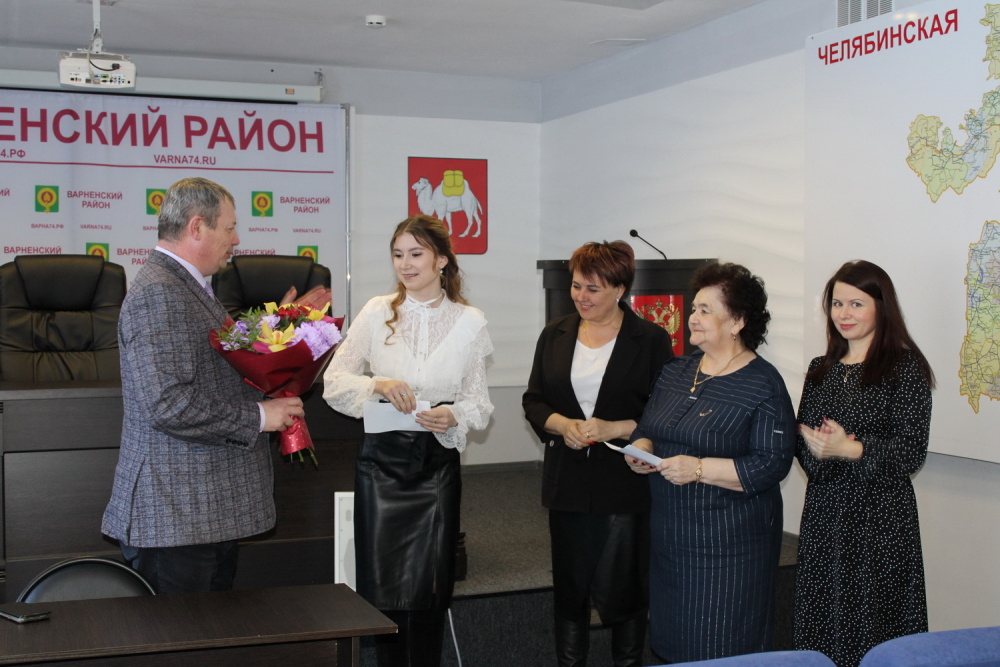Глава Варненского муниципального района К.Ю.Моисеев провёл рабочее совещание, начав его с вручения ключей от квартиры молодому учителю Гимназии Регине Козловой.