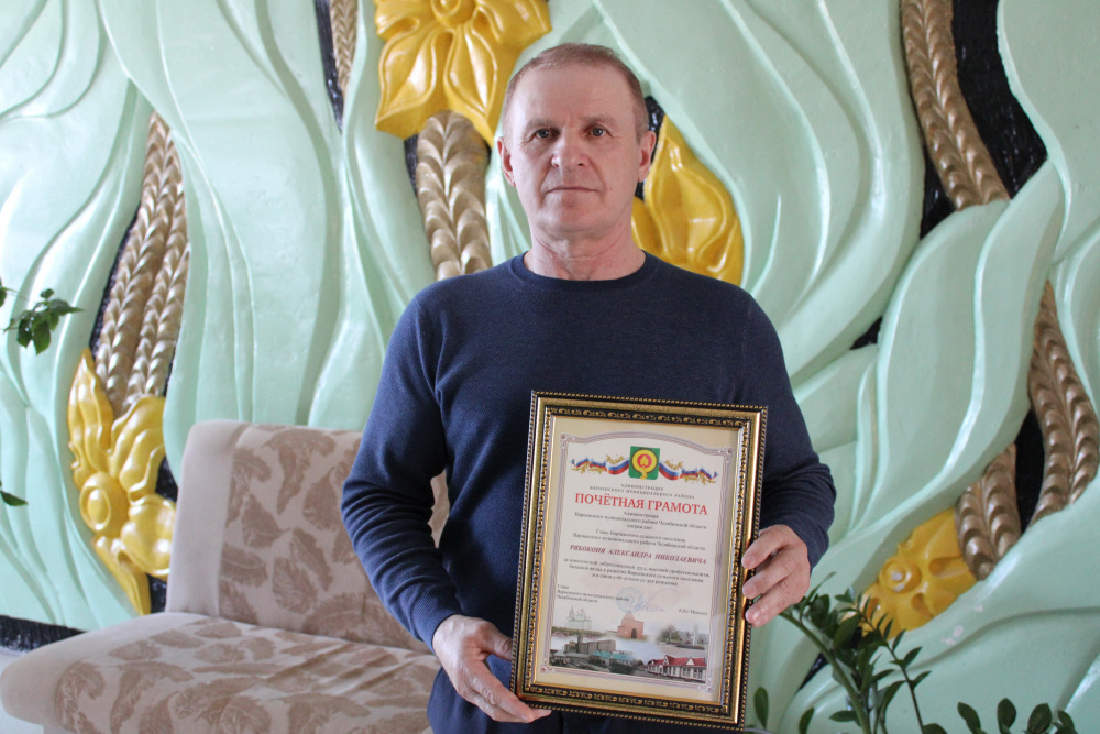 Глава района К.Ю. Моисеев торжественно вручил Почетную грамоту администрации Варненского муниципального района Главе Варненского сельского поселения Александру Николаевичу Рябоконь за многолетний добросовестный труд, высокий профессионализм, большой вклад в развитие Варненского сельского поселения и в связи с 60-летием со дня рождения.