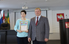 Началось совещание с приятной новости. Глава района К.Ю. Моисеев вручил Благодарность от Управления министерства юстиции Российской Федерации по Челябинской области начальнику отдела ЗАГС администрации Варненского муниципального района О. В. Новиковой за большой личный вклад в реализацию государственных задач в сфере государственной регистрации актов гражданского состояния и досрочное выполнение мероприятий, направленных на внедрение ФГИС «ЕГР ЗАГС». Константин Юрьевич от души поздравил Ольгу Валерьевну с наградой, пожелал здоровья, счастья и дальнейших успехов на своем поприще.