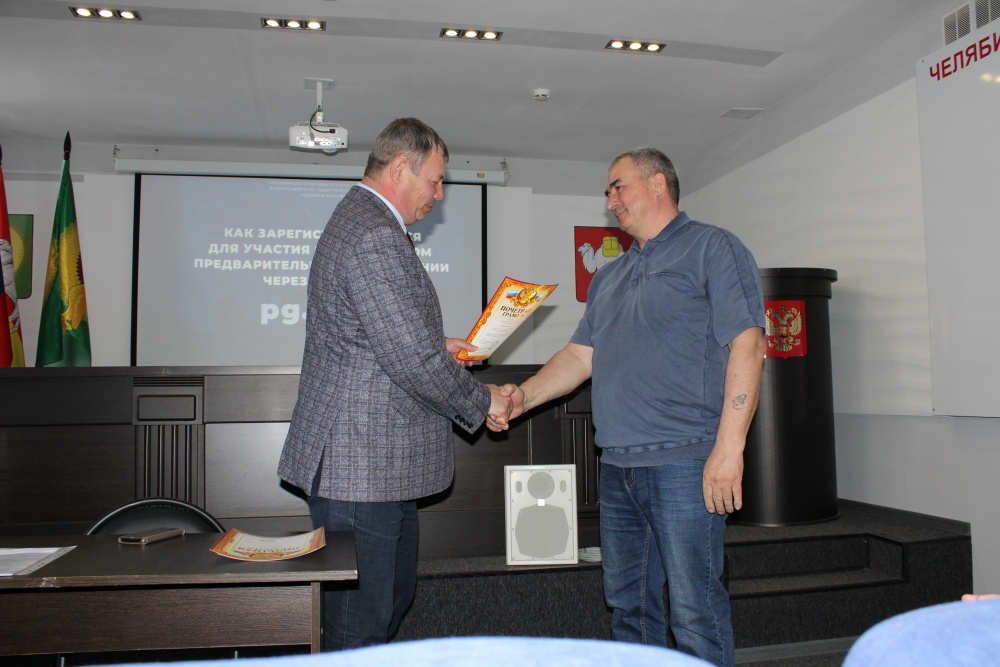 Далее Константин Юрьевич вручил Почетные грамоты Совета муниципальных образований Челябинской области за добросовестный труд, высокий профессионализм и эффективную муниципальную службу в органах местного самоуправления Е.А. Парфенову, С.А. Макайкиной, Т.Н. Игнатьевой, Е.А. Кабаевой, Ю.Г. Панасенко.