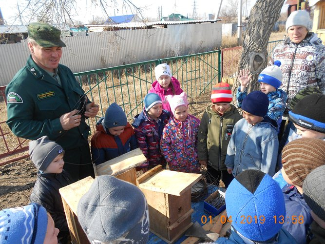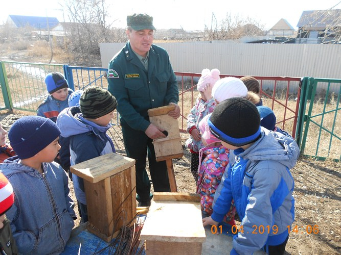 Сегодня гостем нашего детского сада стал инспектор лесного хозяйства Варненского участка Карталинского лесничества, член общества «Боевое братство» Журихин Алексей Викторович. Он рассказал детям историю появления в нашей стране скворцов, рассказал о правильном размещении скворечника и ещё много интересных фактов о птицах нашего региона.