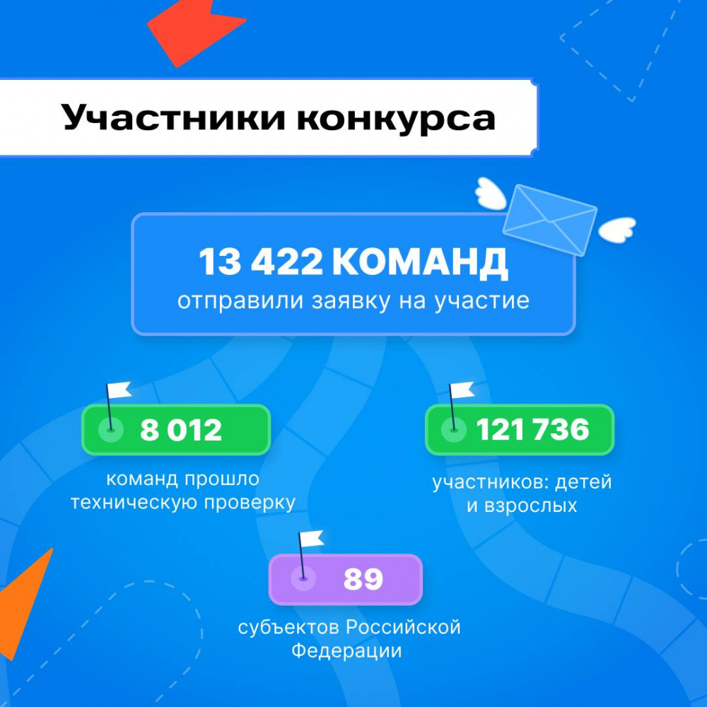 Конкурс проводился в три этапа. Заявки на участие подали 13 422 команды первичных отделений, а это 121 736 участников Движения. Большинство команд было сформировано на базе школ, вузов и колледжей, а также в учреждениях культуры, спорта, молодежной политики и других.