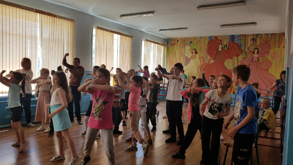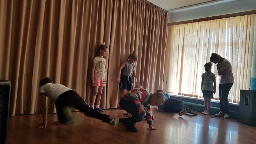 Детский оздоровительный лагерь в полном составе в танцевальном зале Лейпцигского Дома культуры! Шум невообразимый, музыка, суета! Танцевальный батл! Три команды, для каждой по три танца. Капитаны тянут жребий: «Барыня", вальс, «Яблочко», «Брейкданс», танго, танец «вог». И вот уже чубчики и косы мокрые от пота! Получается не всё, и не у всех, но как все стараются! И победила не дружба! Потом старательно делили карамель в разноцветных фантиках! Конфетами мы угостили всех!