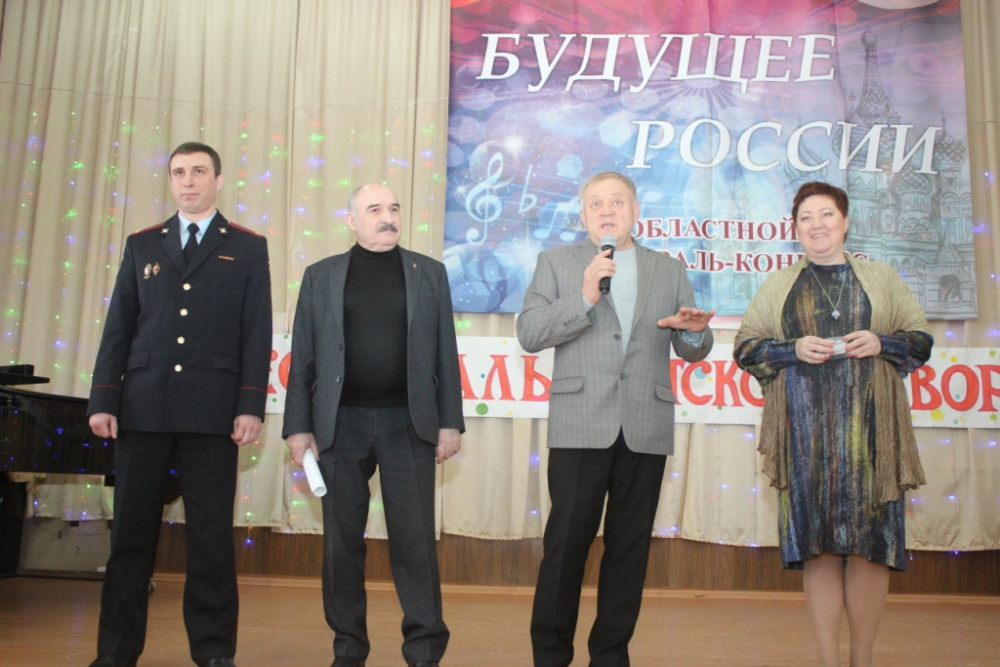 15 ноября в Детской школе искусств с. Варна завершился отборочный тур VII областного фестиваля-конкурса «Будущее России». На церемонии открытия фестиваля с приветственными словами к собравшимся обратились председатель Общественного совета при ГУ МВД России по Челябинской области Владимир Майоров, ответственный секретарь совета Юлия Болотина, заместитель начальника Отдела информации и общественных связей регионального полицейского Главка Александр Дудик.