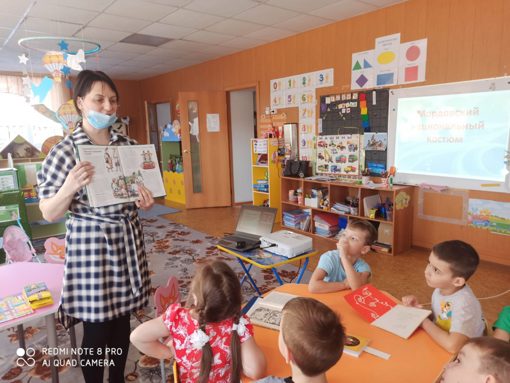 В рамках Года народного искусства и нематериального наследия народов России 15 февраля 2022 года в смешанной дошкольной группе МКДОУ «Д/с №6» с. Варна прошел час информации «Волшебный мир мордовской культуры», на котором ребят познакомили с таким народом, как мордва. Из рассказа дети узнали, где проживает этот народ, чем занимается, какую одежду носит.