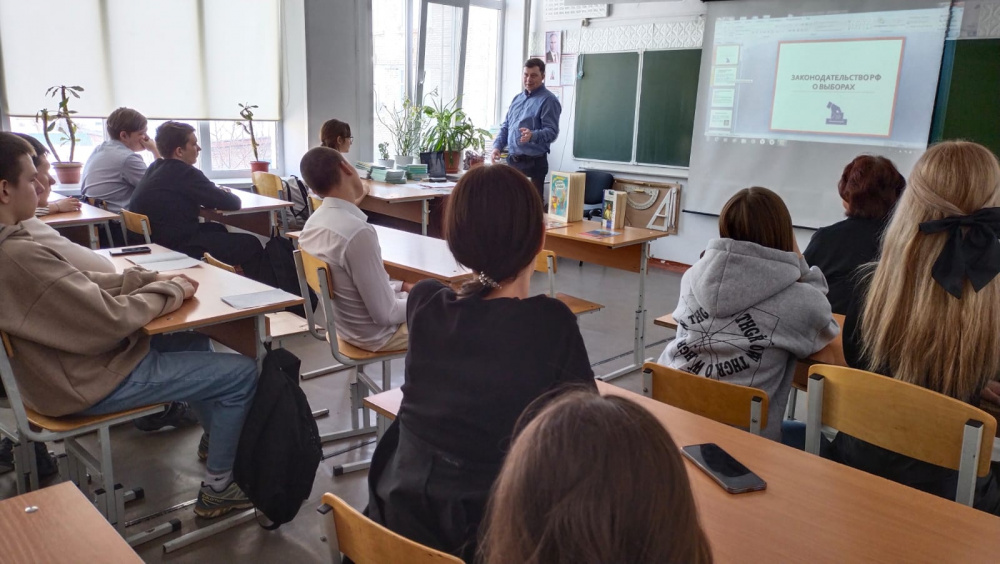 Он ярко и доходчиво рассказал будущим избирателям – старшеклассникам о Законодательстве РФ «О выборах», предстоящих выборах Главы нашего государства, сроках, времени, формах и способах голосования, об организации голосования вне помещения.