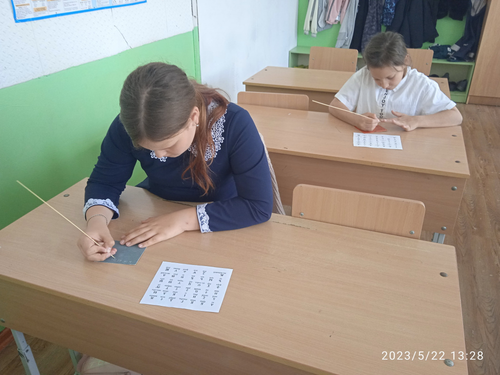 А самым увлекательным моментом на мероприятии был мастер-класс, на котором ребятам предложили написать буквы кириллицы перьями и чернилами, с чем они справились отлично, старательно выводили старославянские буквы и придумывали слова. А на следующем этапе учащиеся выводили буквы кириллицы деревянными палочками-писалами на дощечках. Всё это доставило удовольствие и массу положительных эмоций.