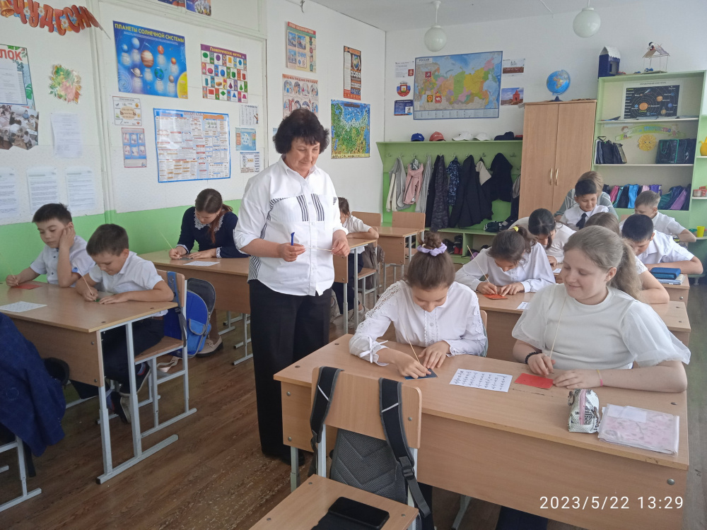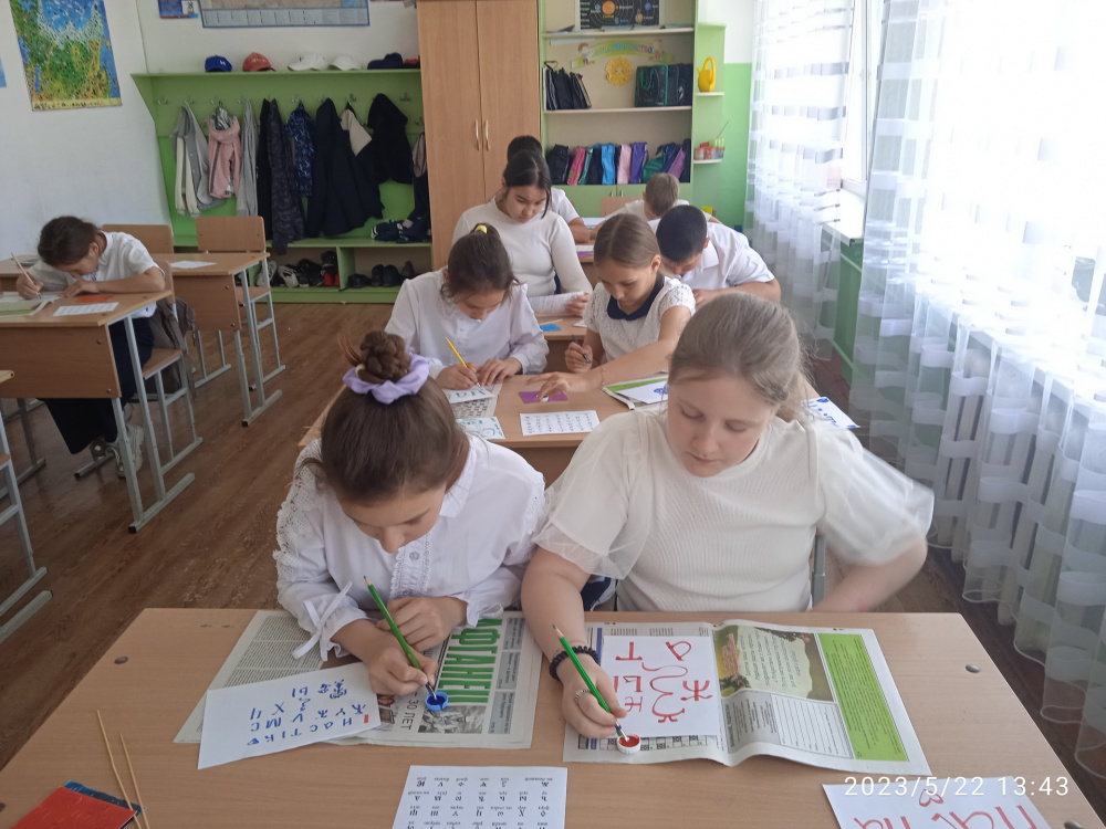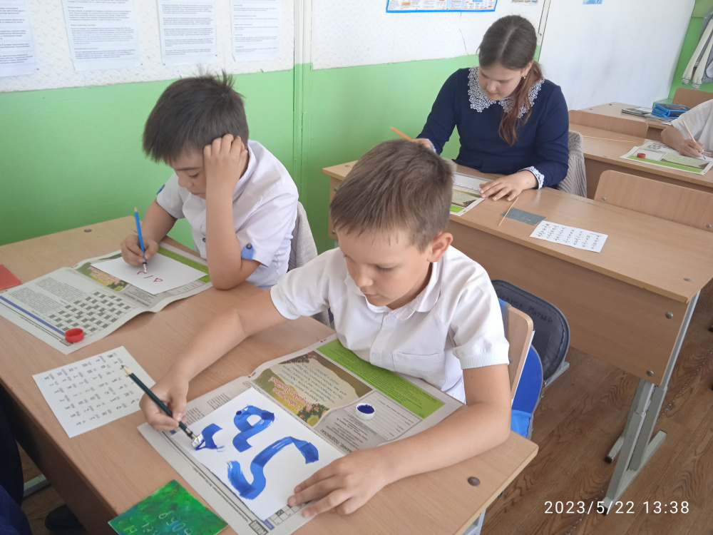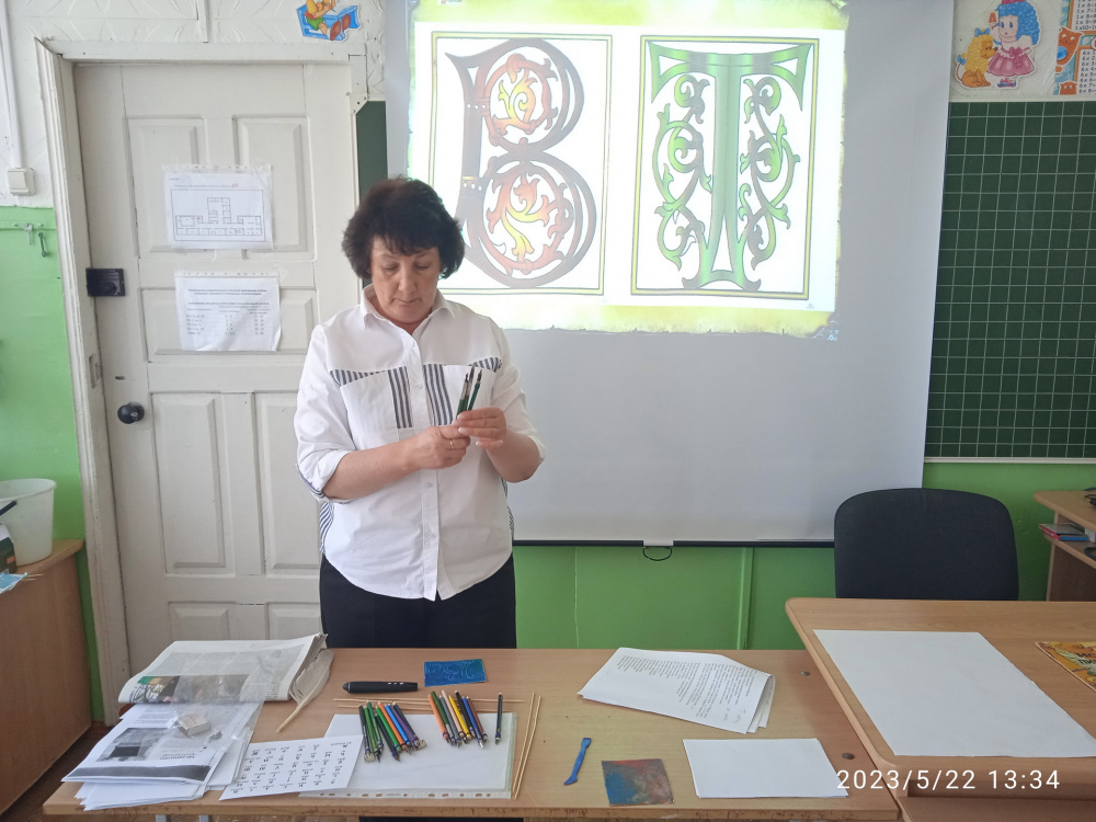22 мая в рамках празднования Дня славянской письменности и культуры с учащимися 4 «Г» класса МОУ СОШ № 1 прошел час занимательной культуры и мастер-класс, на котором ребятам рассказали об истории праздника и его значении для культуры России, познакомили с истоками русской письменности с древних времен до наших дней, славянской азбукой и её создателями Кириллом и Мефодием.
