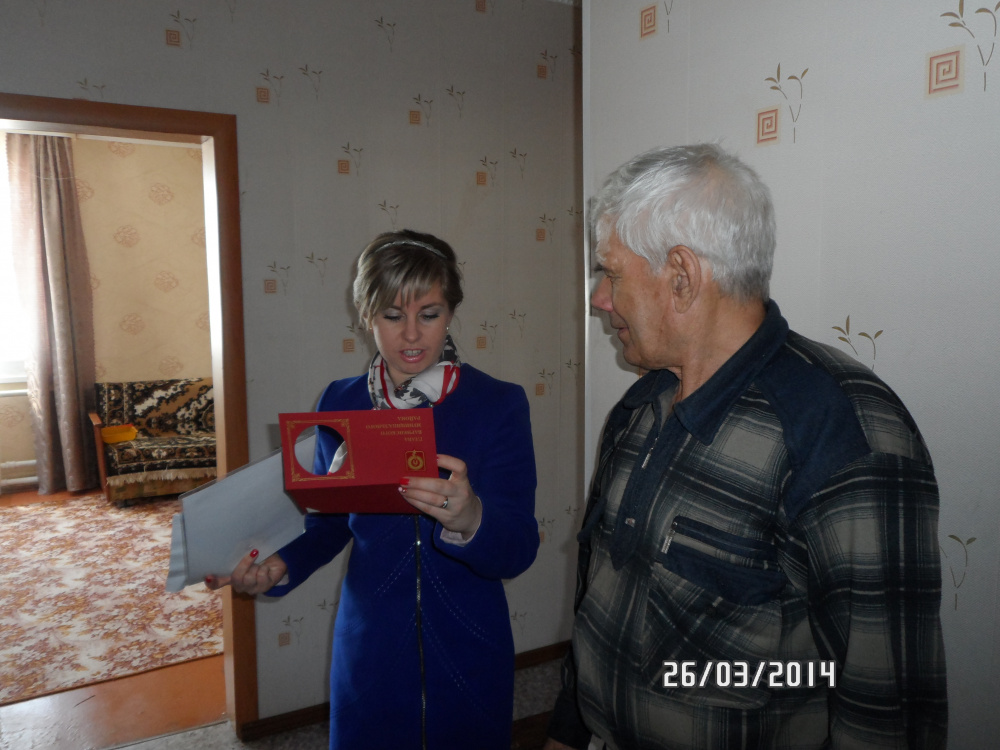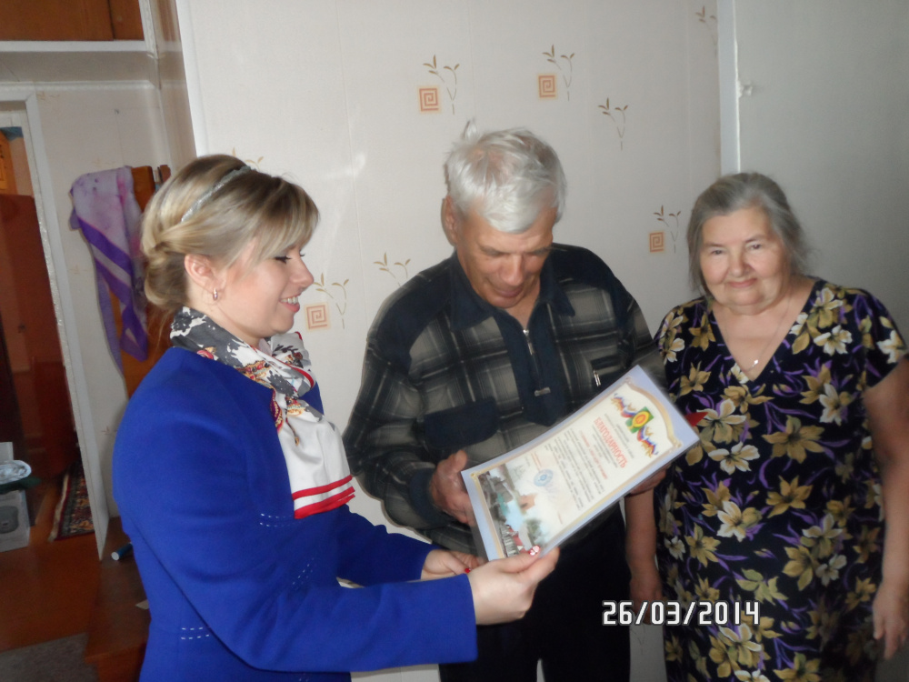 В рамках реализации муниципальной программы «Социальная поддержка населения на 2012-2014 годы» продолжается работа по чествованию юбиляров МУ «Комплексный центр социального обслуживания Варненского муниципального района» и Советом ветеранов нашего района. С начала 2014 года в программу были внесены изменения по данному направлению, кроме 80, 85, 90 лет и старше добавлен возраст 75 лет. Ежемесячно работники социальной сферы поздравляют долгожителей нашего района от имени Главы Варненского муниципального района С.В.Маклакова с вручением памятных поздравительных адресов и денежных премий, а также вручают поздравительные письма от Президента Российской Федерации В.В.Путина старейшим жителям, отметившим свое 90-летие.