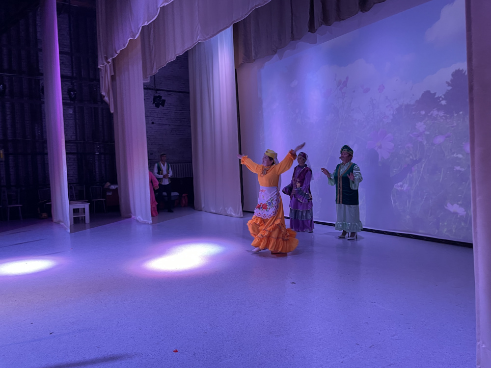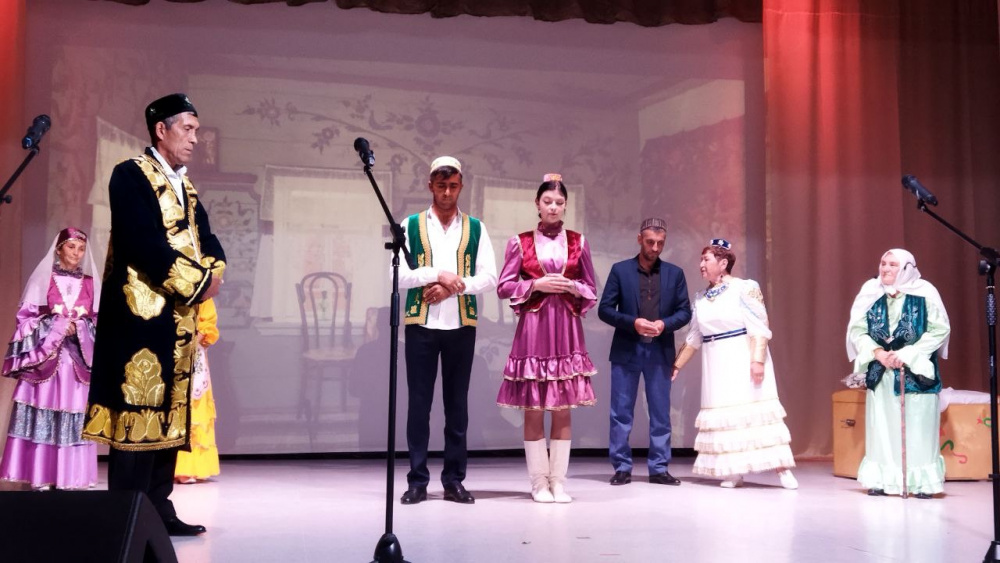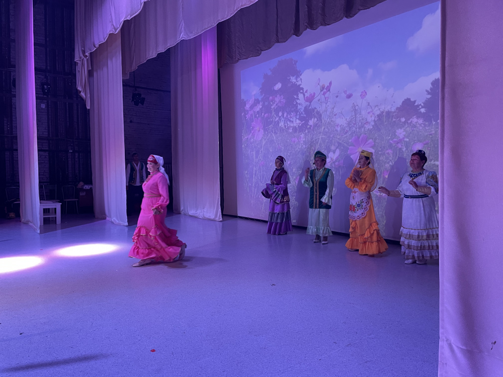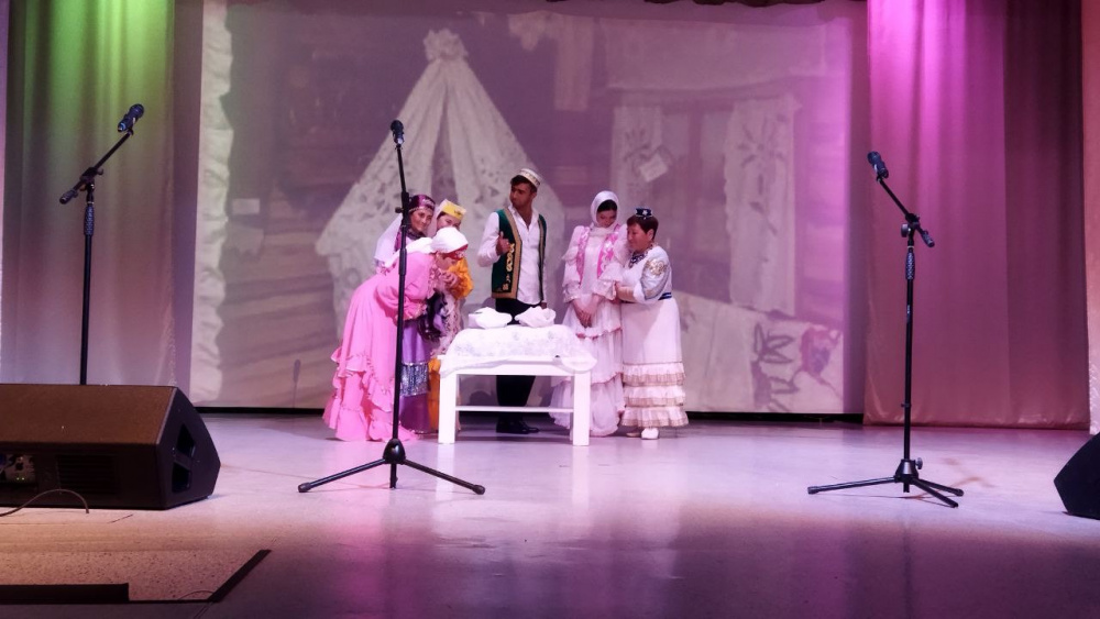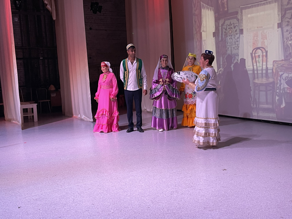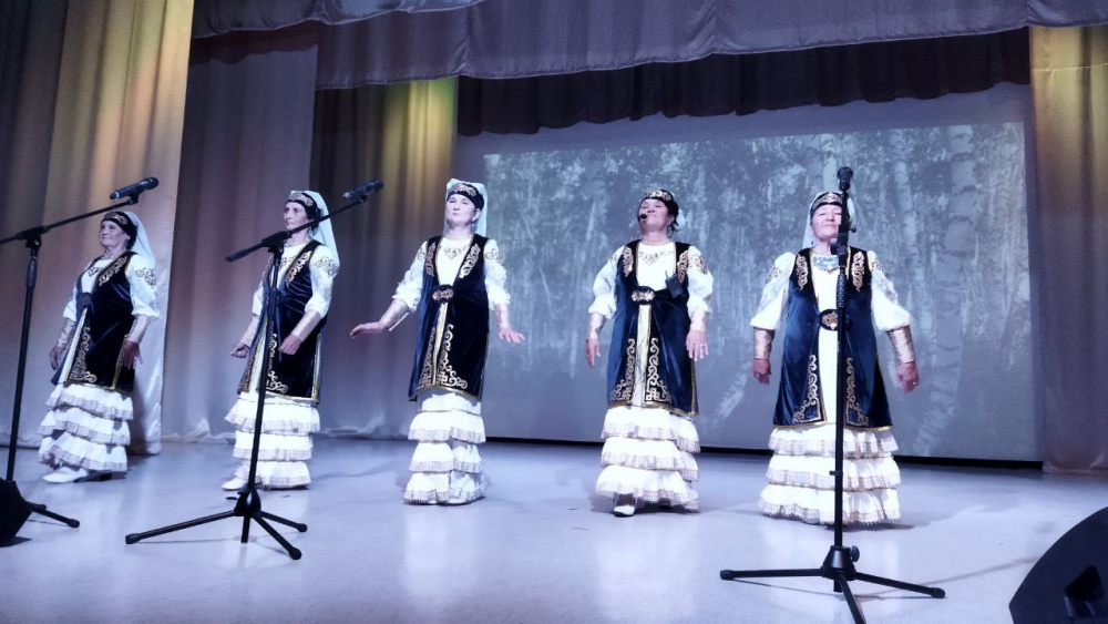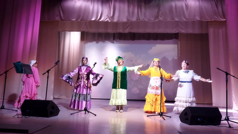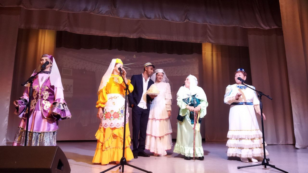 Коллектив подготовил театрализованный концерт о татарской культуре Варненского района. Участницы коллектива удивляли зрителей не только народными песнями и стихами, но и показали стильное дефиле татарских нарядов. Артисты на сцене продемонстрировали историю любви татарской пары, в которой отразили традиции и порядки знакомства, сватовства, женитьбы и семейной жизни.
