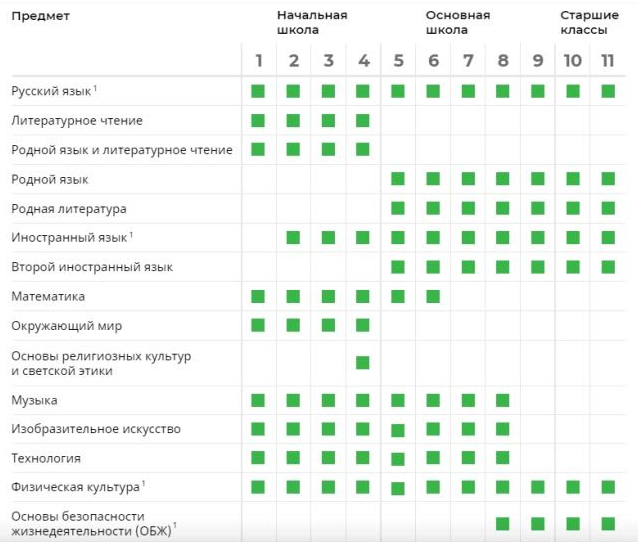 (Примерный учебный план составлен на основе стандартов школьного образования. Применим к школам, где обучение ведётся на русском, но наряду с ним изучают один из языков народов России и иностранные языки)