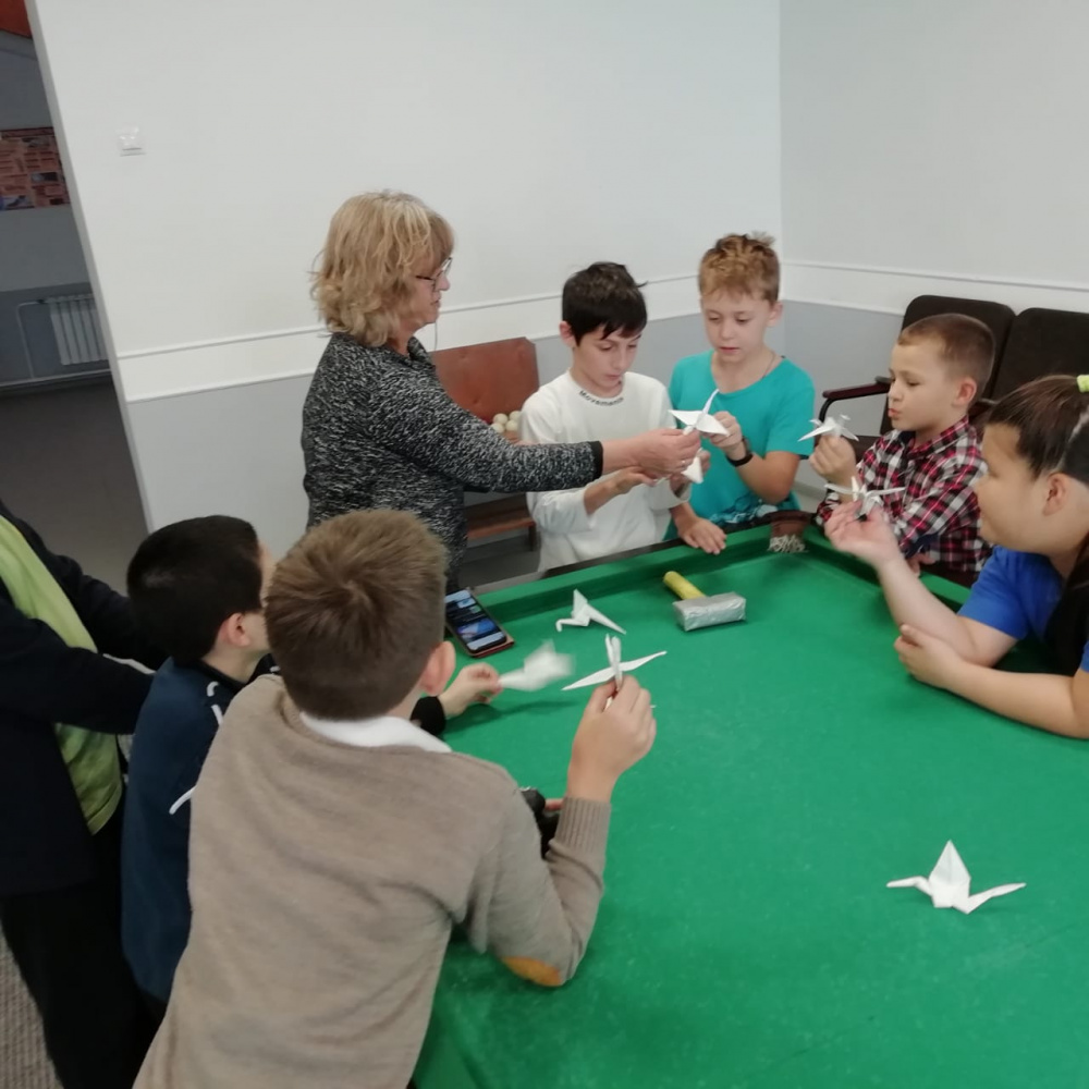 В Кулевчинском, в канун праздника "День Белых Журавлей", прошла беседа с детьми об истории возникновения праздника, о поэте Расуле Гамзатове. О том, что символом праздника являются белые журавли. Памятники белым журавлям олицетворяют память о всех погибших на полях сражений и жертвах терактов. В рамках беседы прошел мастер - класс по поделке из бумаги в стиле оригами "Журавлик".