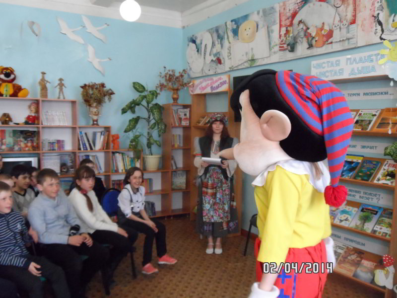 На праздник были приглашены дети 11-12 лет. С ними была проведена экскурсия по библиотеке, были продемонстрированы новые издания детских книг в комических и романтических жанрах. Сегодня ребята сами были в роли писателя, все вместе сочиняли сказку, отгадывали загадки про сказочных героев. В конце мероприятия, детям из семей, состоящих на учете в МУ КЦСОН были подарены интересные и красочные книжки.