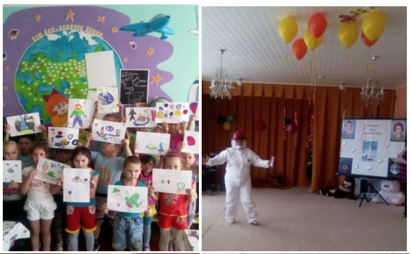 В старшей и средней группе прошли беседы и просмотр презентаций о Космосе и его первооткрывателях. Воспитанники старшей группы нарисовали рисунки на тему Космоса.