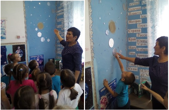 С воспитанниками группы провели беседу о космосе, где дети показали свои знания о планетах, разгадывали космические загадки, а в конце беседы посмотрели презентацию «Космос и его первооткрыватели».