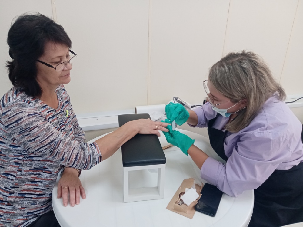 По рукам женщины можно определить возраст , поэтому в пожилом возрасте особое внимание необходимо уделять уходу за ними. Мастер маникюра Баландина Юлия участникам встречи рассказала о правилах ухода за руками и ногтями, провела процедуры гигиенического маникюра для всех желающих.