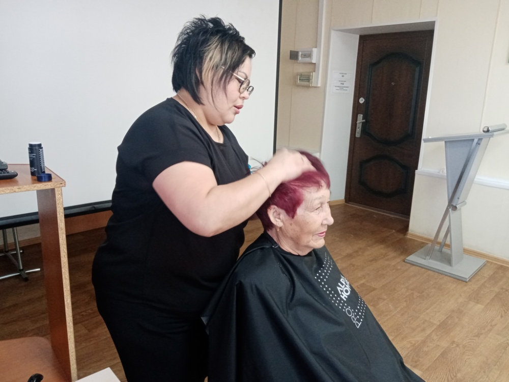 Гостями клуба стали парикмахеры Теканова Элона, Оспанова Рамиля и мастер маникюра Баландина Юлия. Эти женщины заключили социальный контракт и уже не первый год успешно развивают свою предпринимательскую деятельность в сфере красоты. Участники клуба узнали, какие прически подойдут для женщин серебряного возраста, какие косметические средства подходят для ухода за волосами в серебряном возрасте. Всем желающим женщинам наши гости с удовольствием помогли уложить волосы, создать прекрасные образы.