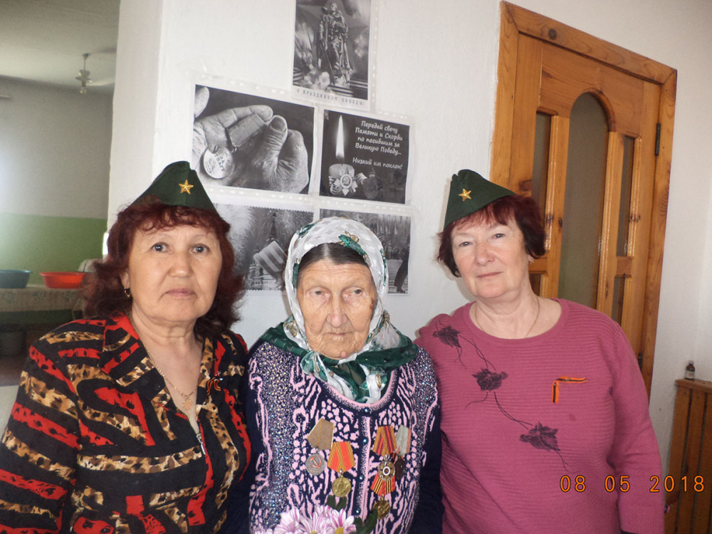 Труженики тыла – люди преклонного возраста и не все могут добраться на праздничные мероприятия. Поэтому было решено организовать поздравление на дому. В преддверии праздника Дня Победы, жители посёлка Красноармейка отправились поздравлять труженика тыла Бикулову Б.З. Звучали стихи, песни. Бикулова Б.З. была очень довольна, что ей уделили внимание, и, принимая поздравления, охотно делилась своими воспоминаниями о событиях военных лет, о тяготах военного времени, о том, сколько приходилось работать, для того, чтобы у солдат на фронте было всё необходимое: тёплая одежда, хлеб, оружие для борьбы с фашистскими захватчиками и т.д.