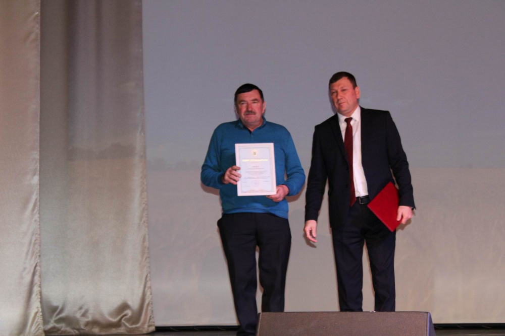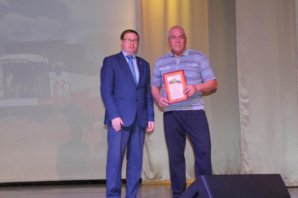 Председатель Собрания депутатов Варненского района Алексей Кормилицын выступил с поздравительной речью и вручил грамоты Собрания депутатов отличившимся аграриям.