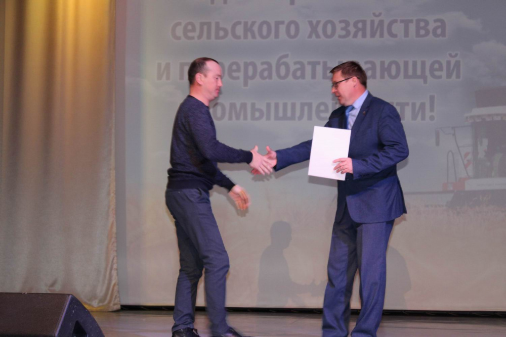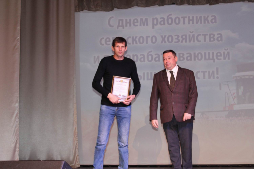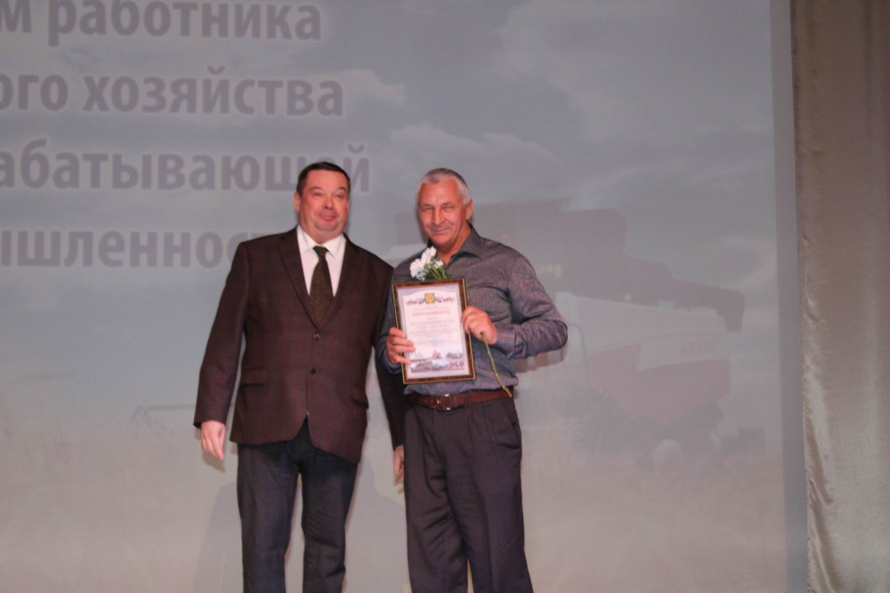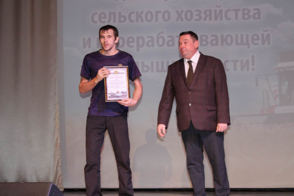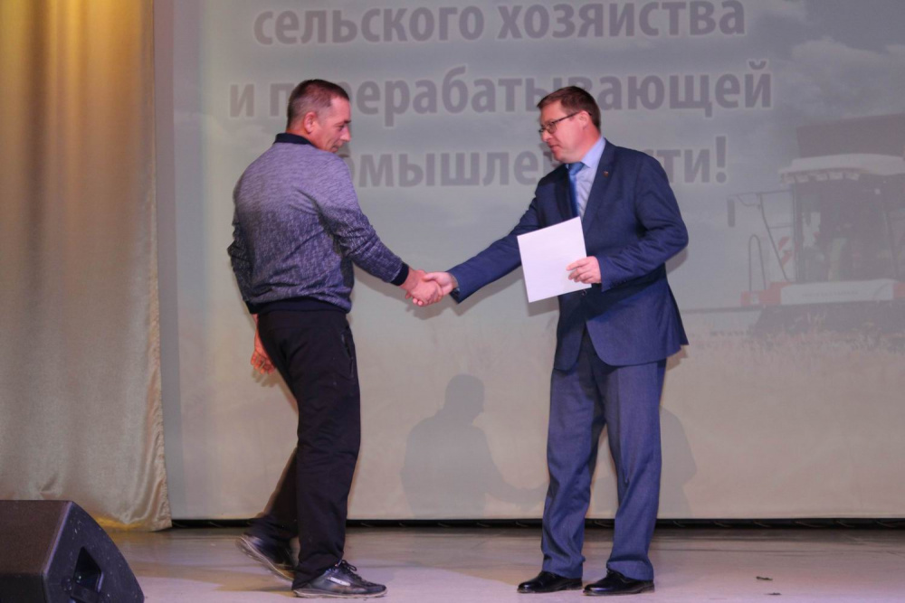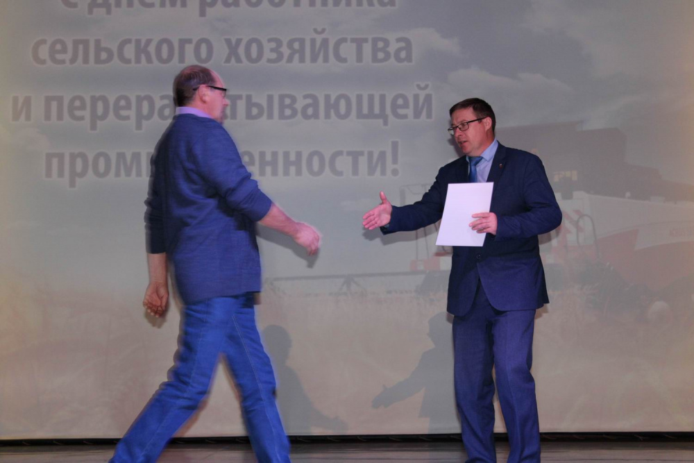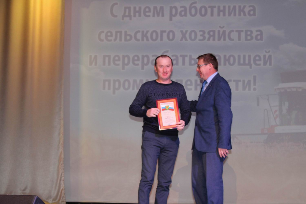 Со сцены представитель Министерства сельского хозяйства Челябинской области Дмитрий Зубков поздравил варненских тружеников села, передал поздравительный адрес от Министра на имя Главы района и вручил главному агроному ООО «Заозёрное» Александру Ракоед Грамоту Министерства сельского хозяйства Российской Федерации за многолетний добросовестный труд и в связи с профессиональным праздником.