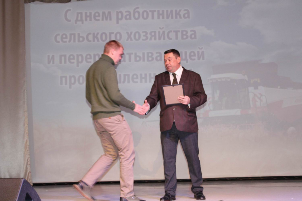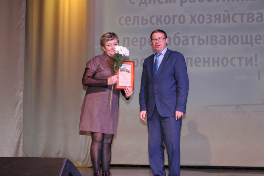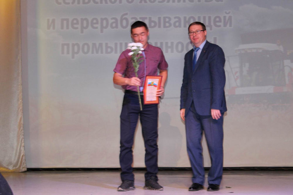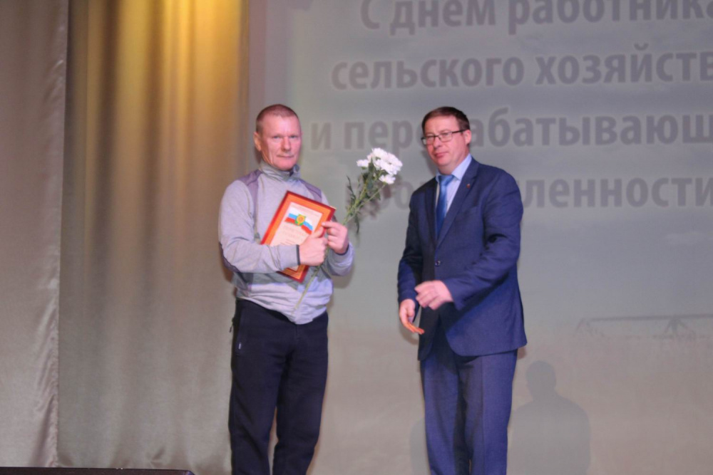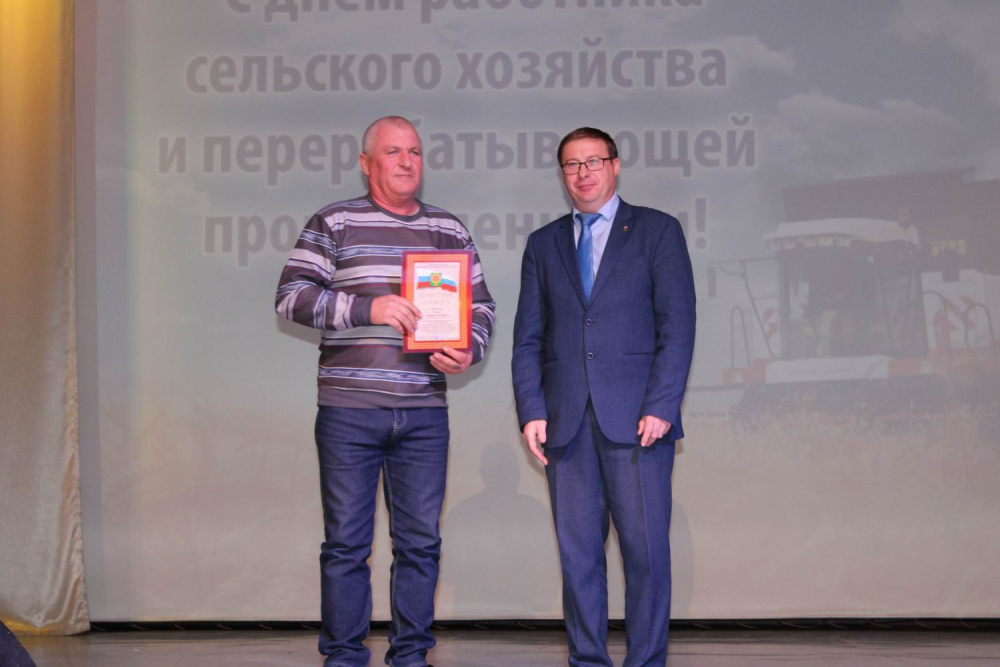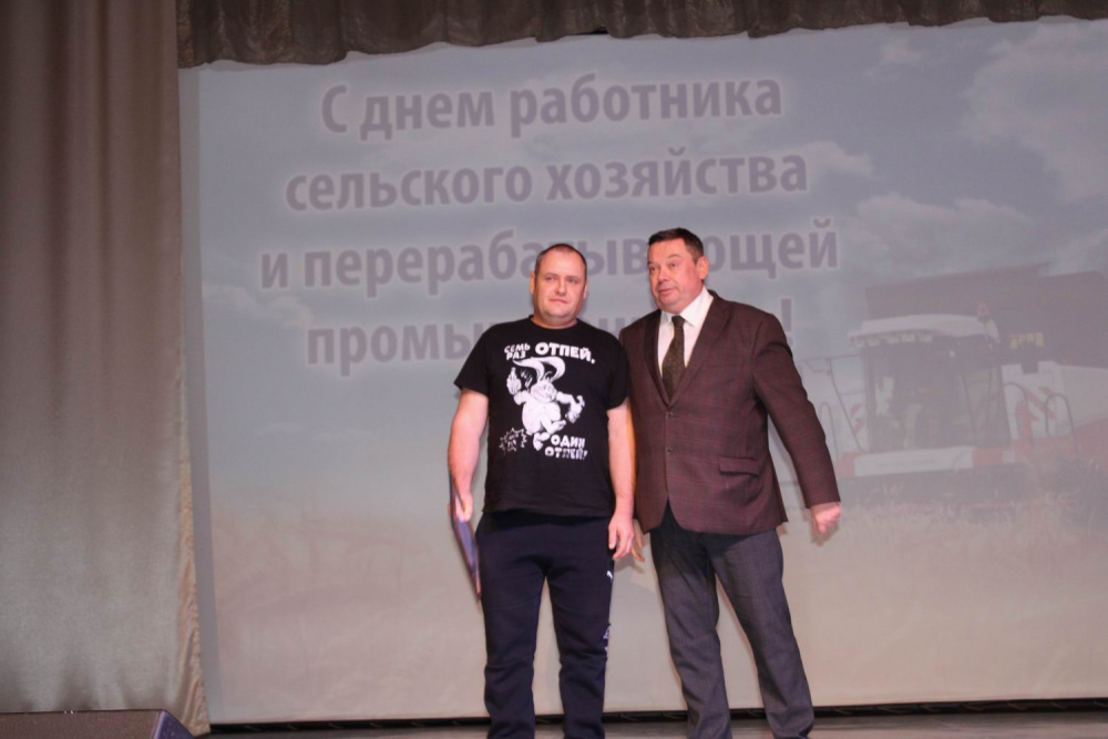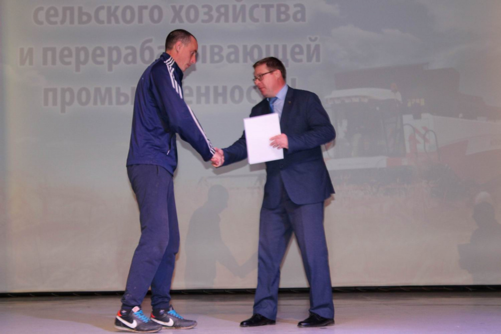 Со сцены представитель Министерства сельского хозяйства Челябинской области Дмитрий Зубков поздравил варненских тружеников села, передал поздравительный адрес от Министра на имя Главы района и вручил главному агроному ООО «Заозёрное» Александру Ракоед Грамоту Министерства сельского хозяйства Российской Федерации за многолетний добросовестный труд и в связи с профессиональным праздником.