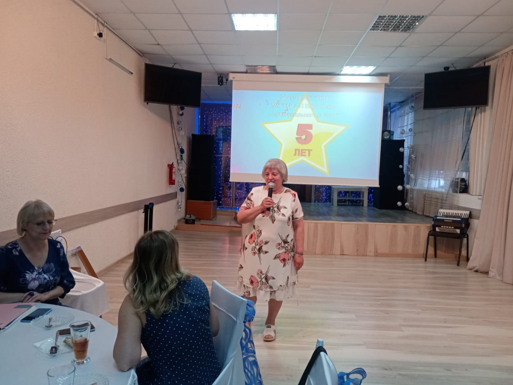 С приветственным словом к гостям выступила Заместитель главы по социальным вопросам Васичкина Оксана Валерьевна, основатель Досугового центра. Она рассказала гостям историю создания клубов, как все начиналось, и пожелала Досуговому центру расти и развиваться дальше. Начальник УСЗН Прохорова Е.С. поздравила всех с первым юбилеем и поблагодарила сотрудников комплексного центра за работу в данном направлении.