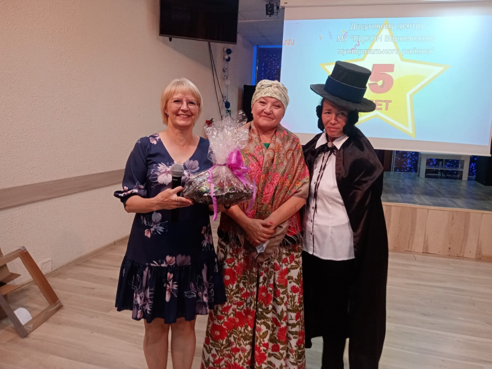В этот день в гостях у Досугового центра было много гостей. Звучали поздравления от наших социальных партнёров: Председателя Совета ветеранов Чернаковой Г.Г., от Собрания депутатов Варненского муниципального района депутата Ушаковой В.Л., от сотрудников Варненской районной библиотеки, от Центра национальных культур, а структурный директор офиса Фаберлик Ермолаева В. В. вручила всем участникам мероприятия подарки от компании.