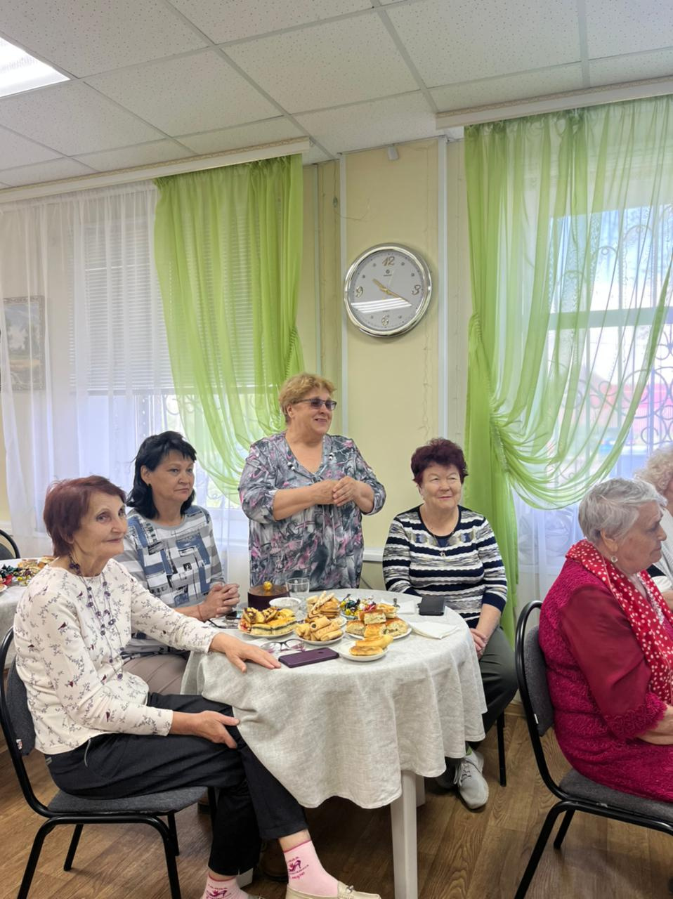 Каждый участник праздника пожелал досуговому центру мира, добра и процветания. За чашечкой чая с пирогами гости клуба общались, рассказывали о себе, читали стихи, пели песни, строили планы на будущее.