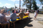 задувает микрофоны, колонки, звук гуляет . Но не смотря на все это в п.Ракитный с утра суета, звучит музыка, тянет дымком от шашлыка, идет торговля косметикой, вкусной выпечкой, женщины накрывают столы на улице, а вокруг снует ребятня, все нарядно одетые, кто-то будет петь, кто-то танцует. И вот начало праздника. Традиционно славят старожилов, ветеранов труда, целинников, юбиляров, молодоженов, молодых родителей, выступает коллектив «Сударушка», выступают дети Ракитинские читают стихи, танцуют, поют. И вдруг подходит пожилой мужчина со слезами на глазах пытается что-то сказать а музыка гремит, думаем что-то не так, оказалось он подошел выразить благодарность, что о нем не забыли и поздравили его с юбилеем. Перед Ракитинцами выступила Е.С.Прохорова начальник управления соцзащиты. Она поздравила всех с праздником, пожелала всем добра и отметила тот факт, что не первый год приезжает в поселок видит каждый год одну картину: много детей и все ухоженные, чистенькие и нарядные.