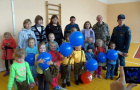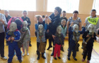 На входе в школу №2 их ждал пожарный автомобиль, который сразу стал объектом интереса как детей, так и их родителей.