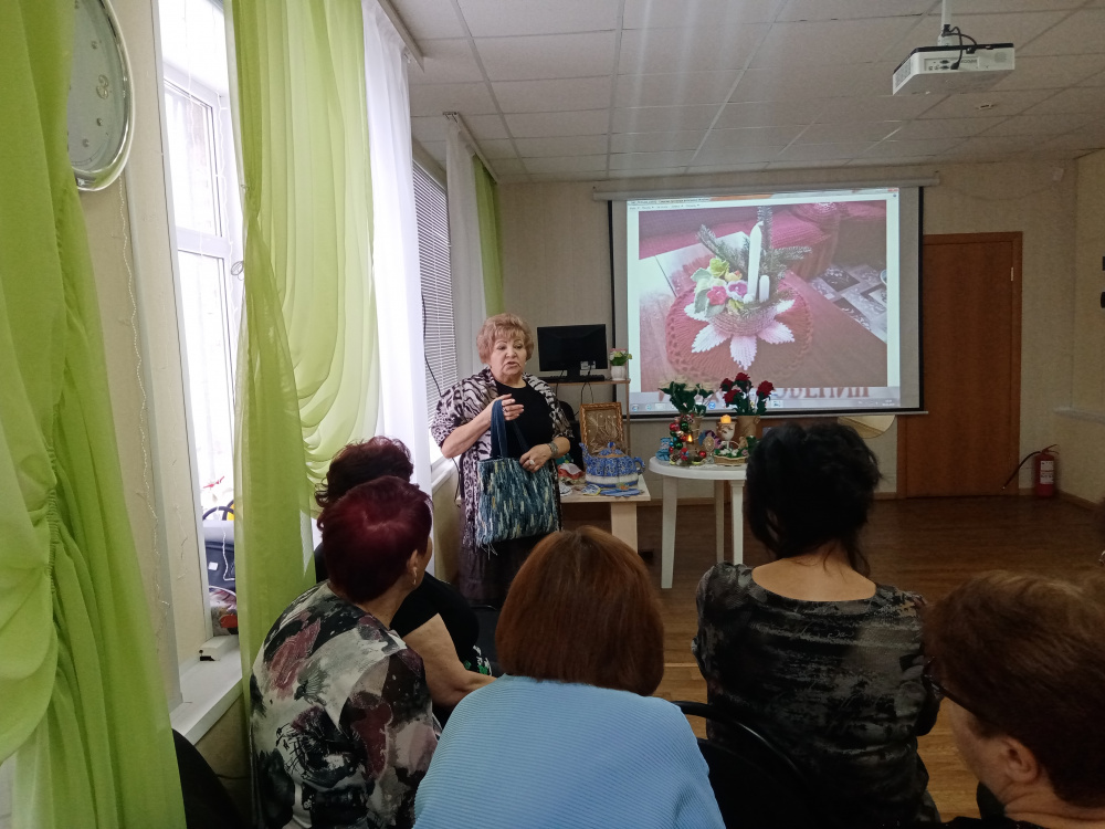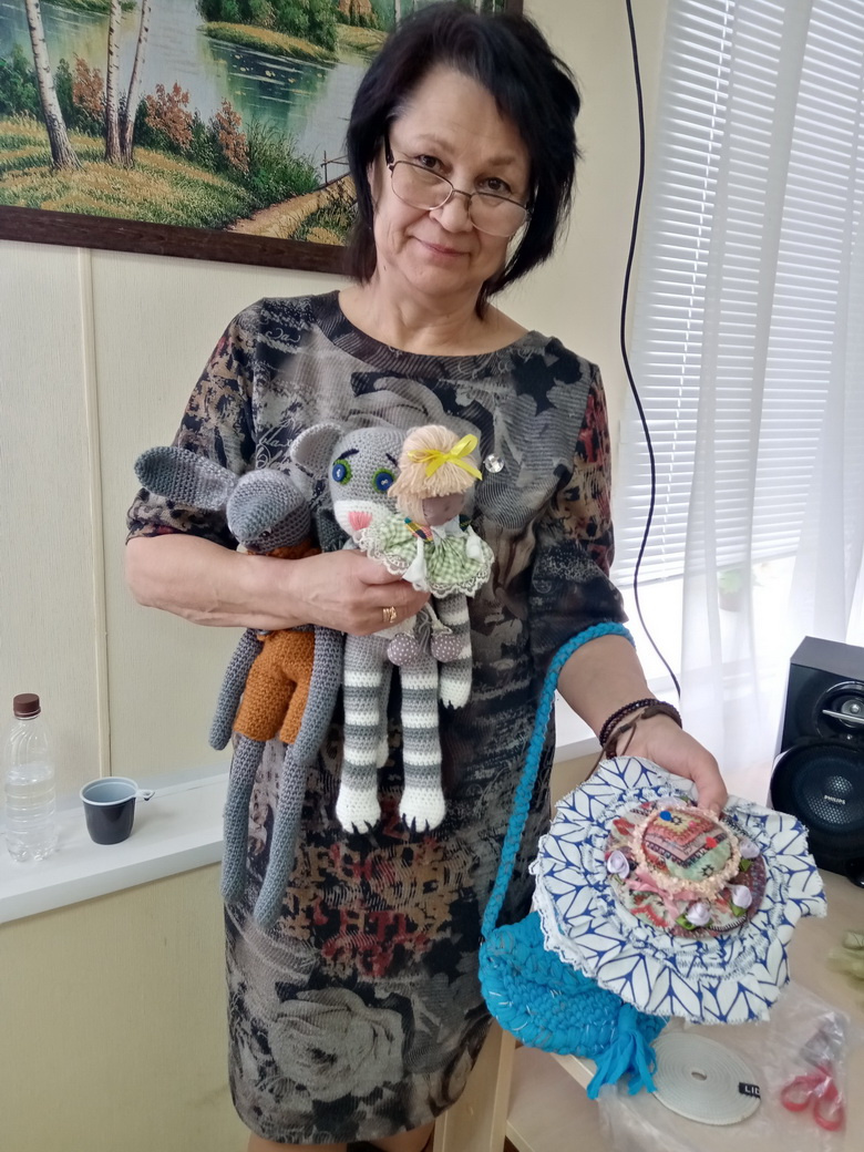 Селиверстова Альфия Шагшарифовна – постоянный участник клуба, серебряный волонтер представила участникам клуба вязаные игрушки, полезные мелочи для дома, сумочки, подставки под горячее, игольницу, сделанные своими руками. Из остатков ткани и пряжи, из всего, что есть под рукой, получаются действительно замечательные вещи.