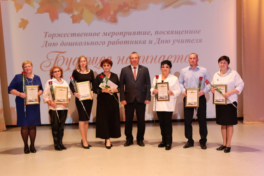 5 октября во Дворце культуры «Планета» для педагогического сообщества Варненского муниципального района Управлением образования было организовано торжественное мероприятие, которое объединило два профессиональных праздника День учителя и День дошкольного работника. Праздничный концерт с поздравлениями от первых лиц района главы Константина Юрьевича Моисеева, председателя Собрания депутатов Кормилицына Алексея Анатольевича, председателя профсоюзной организации педагогических работников Чирковой И.П., заместителя главы по образованию, начальника Управления образования Яруш Людмилы Юрьевны и видеопоздравлениями выпускников детских садов и школ прошлых лет был ярким, зарядил всех позитивными эмоциями.