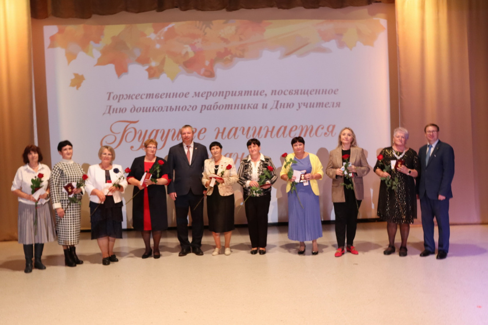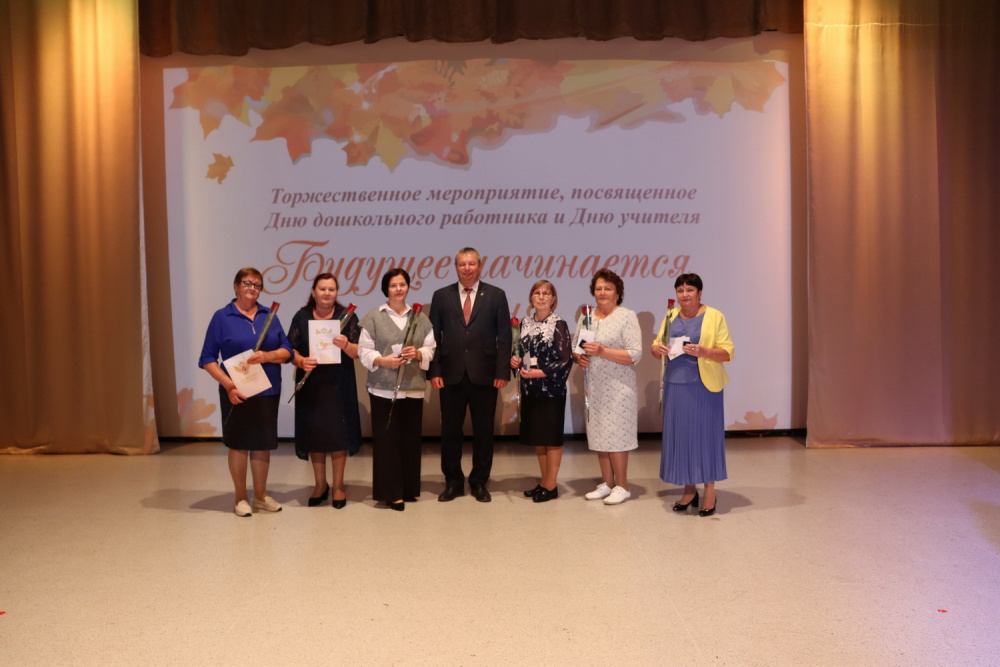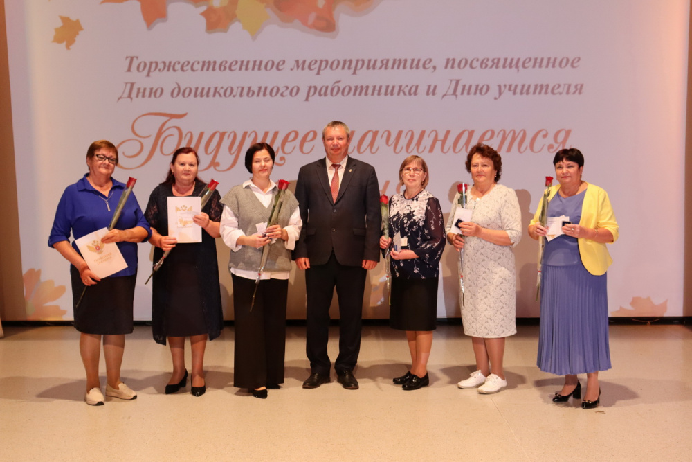 Моисеев Константин Юрьевич, глава района и Кормилицын Алексей Анатольевич председатель Собрания депутатов вручили педагогам награду «За заслуги перед Варненским муниципальным районом». Данной награды были удостоены педагоги, проработавшие в системе образования района почти сорок лет и более и внесли огромный вклад в развитие нашей системы образования. Это Мыльникова Ольга Эдуардовна, учитель математики Гимназии имени Карла Орфа села Варна, Суркина Галина Семеновна, председатель Совета ветеранов села Кулевчи, до 7 февраля 2023 года работала заведующей детского сада села Кулевчи, Клочкова Татьяна Николаевна, директор, учитель русского языка и литературы школы села Александровка, Черникова Елена Алексеевна, учитель начальных классов школы № 1 села Варна, Черникова Лидия Николаевна, учитель русского языка и литературы школы села Алексеевка, Исакова Зоя Николаевна, учитель физики и математики, заместитель директора по учебно-воспитательной работе школы посёлка Красный Октябрь, Карпова Татьяна Ивановна, учитель музыки, заместитель директора по воспитательной работе школы № 1 села Варна, Чиняева Раиса Филипповна, учитель математики школы № 1 села Варна, Ишкаева Минслу Шакировна, ветеран педагогического труда, работала учителем истории школы № 1 села Варны.